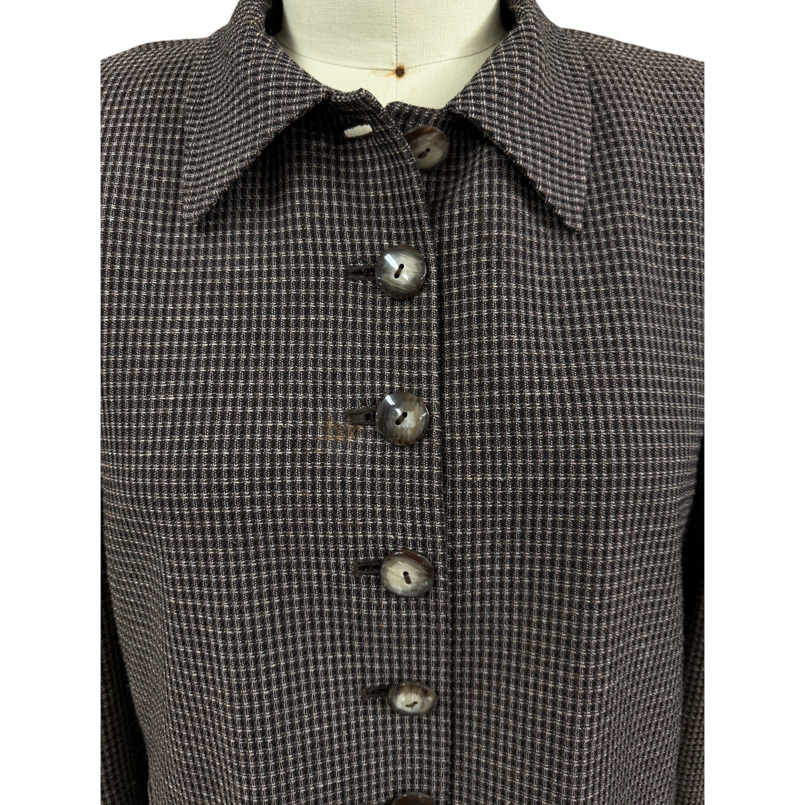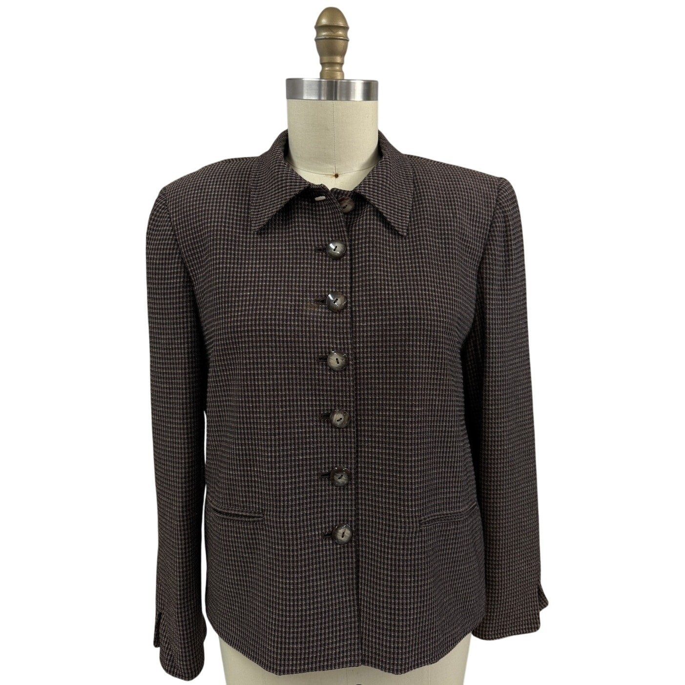 Christian Dior Vintage 80s Brown Silk Blend Tweed Suit Jacket Womens 12