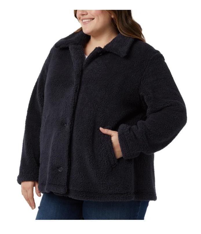 32 Degrees Womens Jacket Navy Blue Fleece Pockets Button-Front Soft Cozy