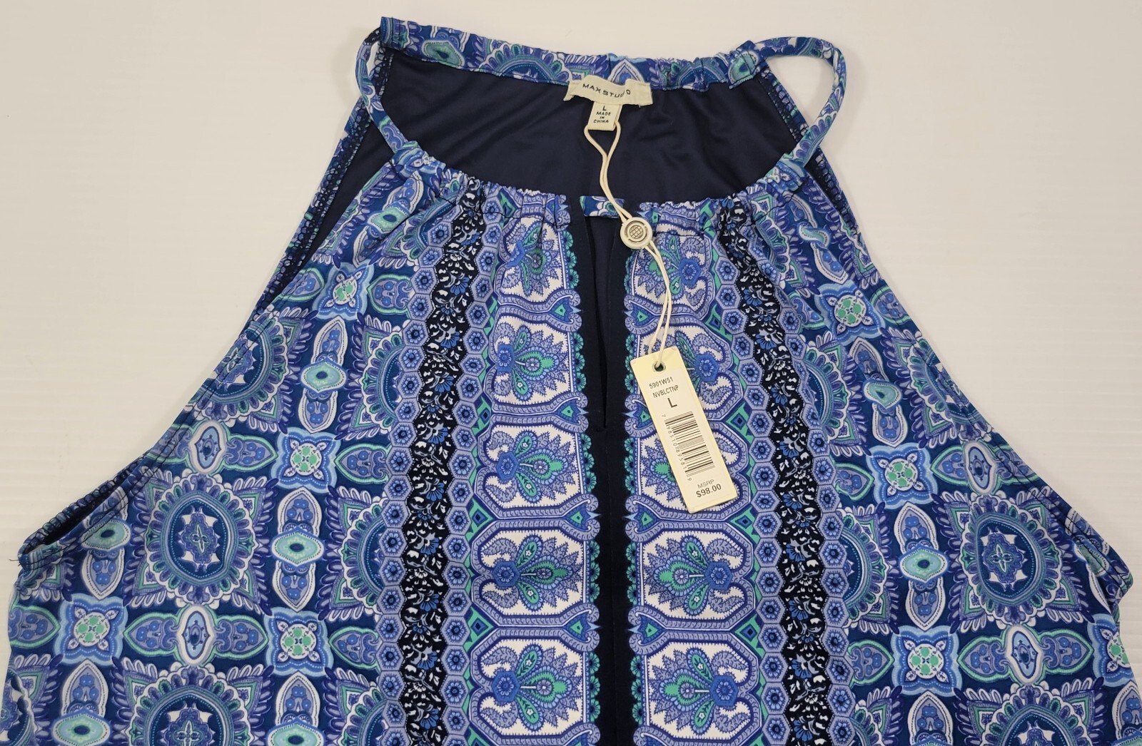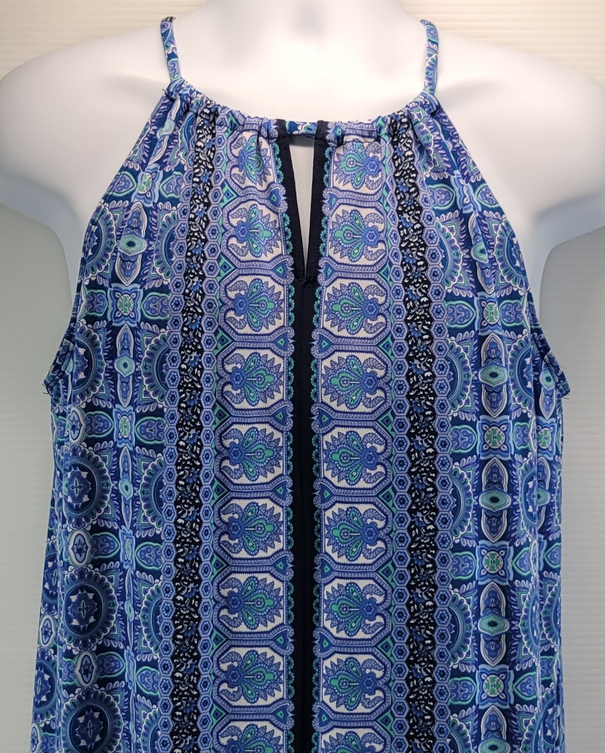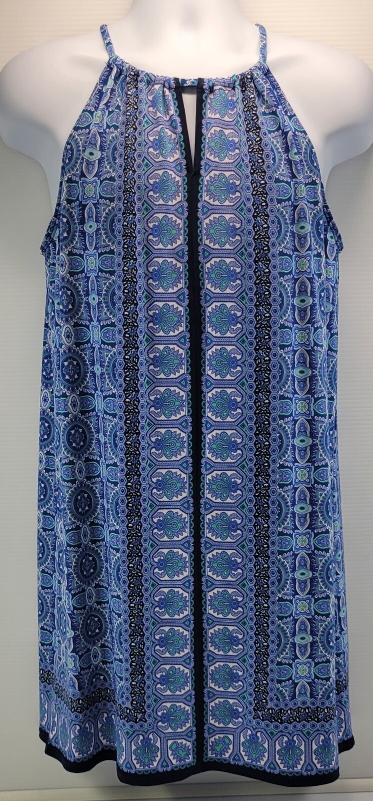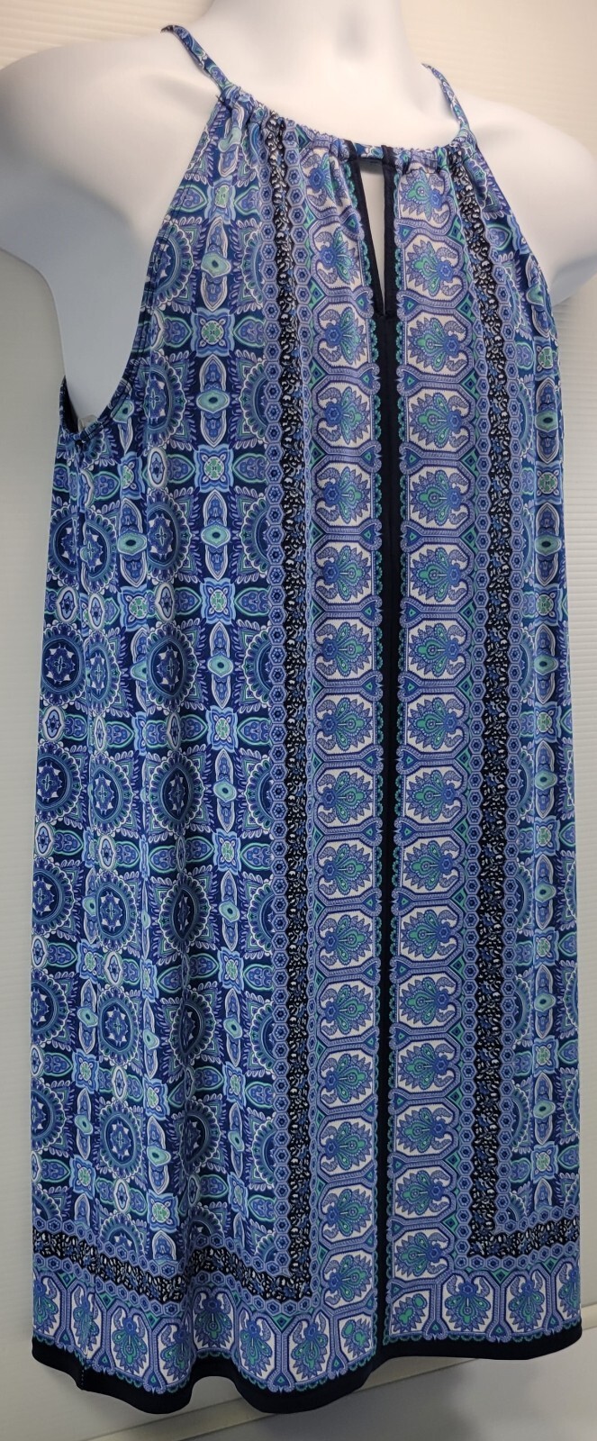 MM) Max Studio Woman Geometric Blue Sleeveless Dress Large