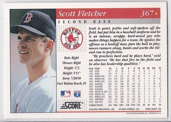 M) 1994 Score Baseball Trading Card - Scott Fletcher #367
