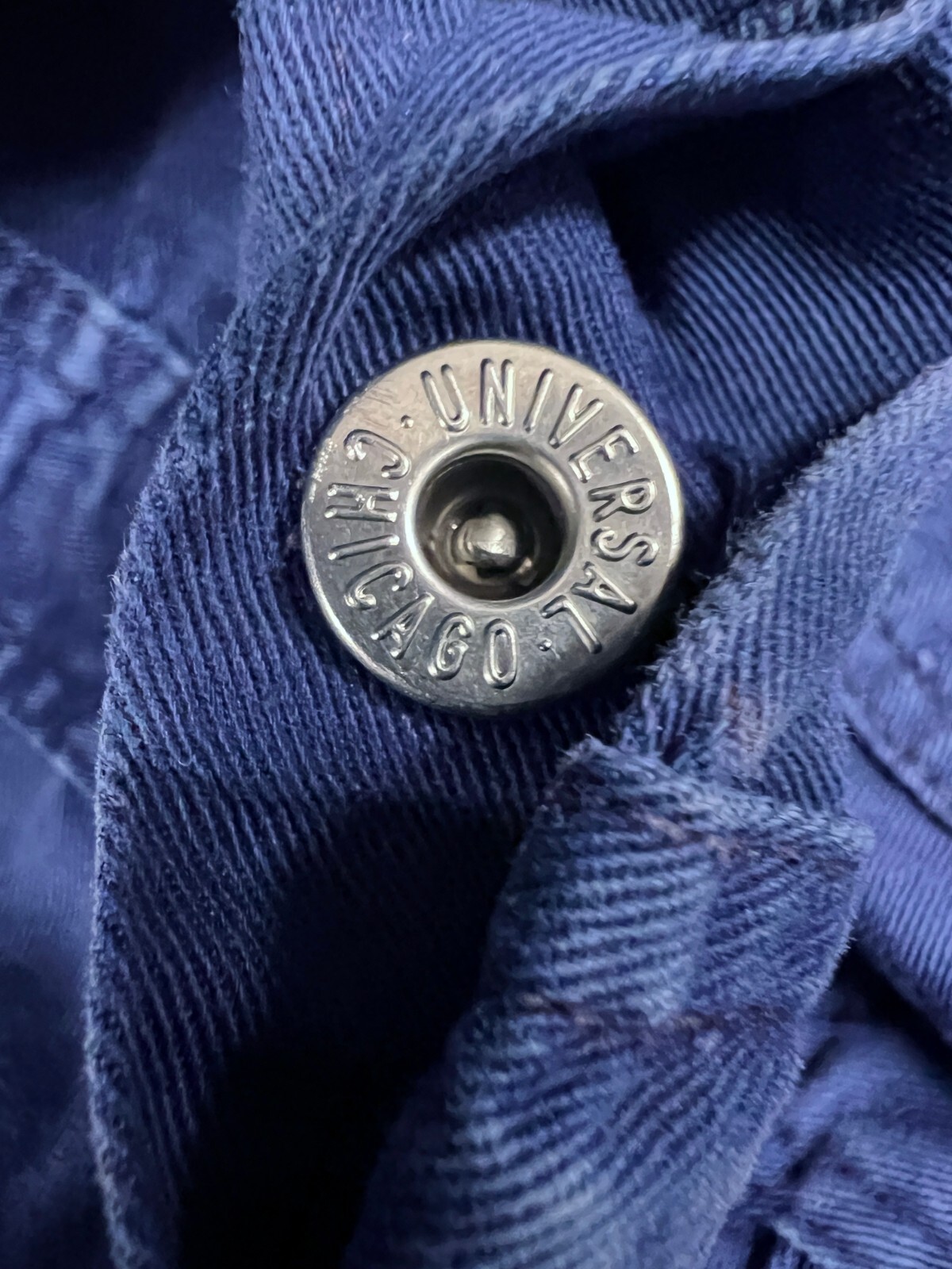 Get that authentic workwear look with these killer vintage 1940s Universal Overall Company coveralls! These are the real deal, in a classic "Stone Cutters Blue" 100% cotton, and featuring a button fly and front closure. The best part? The "Bob" name patch on the chest adds some serious street cred and a one-of-a-kind vibe. These coveralls are in excellent shape and ready to be worn, making them a sustainable and durable choice for your style.