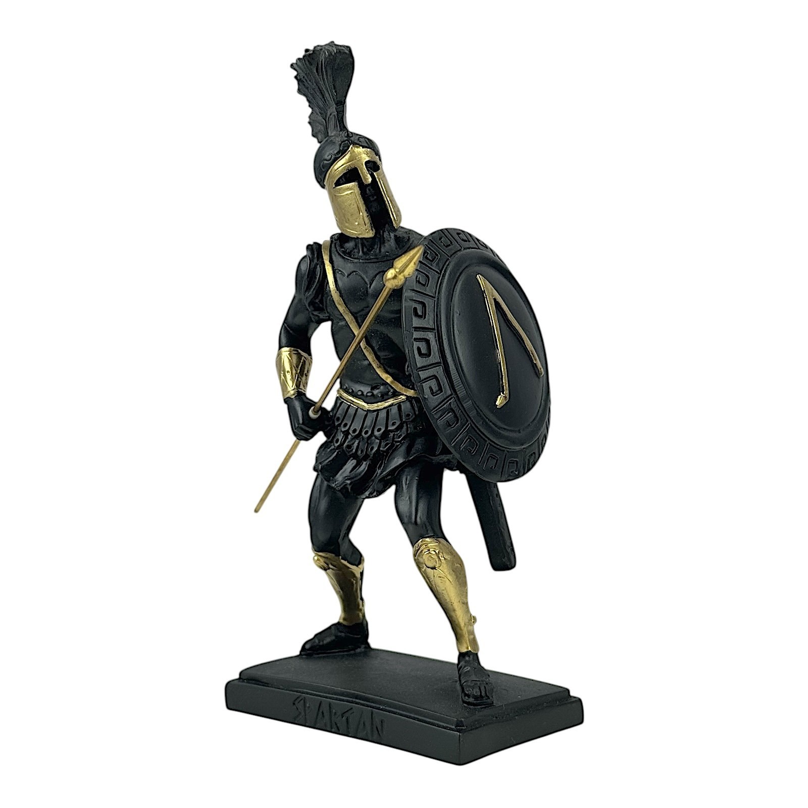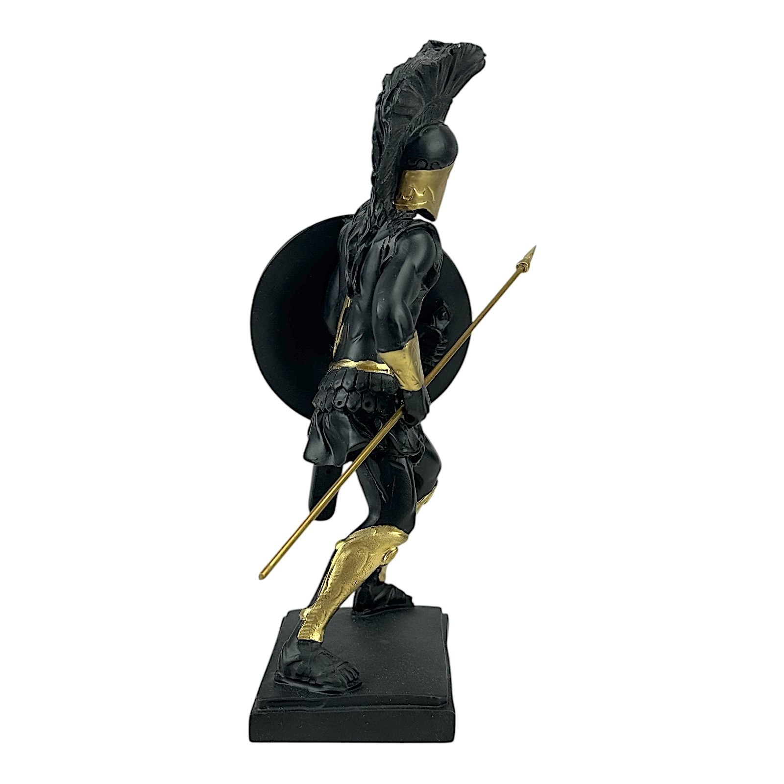 Finished in elegant black and gold tones, this sculpture embodies the spirit of the legendary Spartan hoplites, renowned for their endurance and heroism at battles such as Thermopylae.