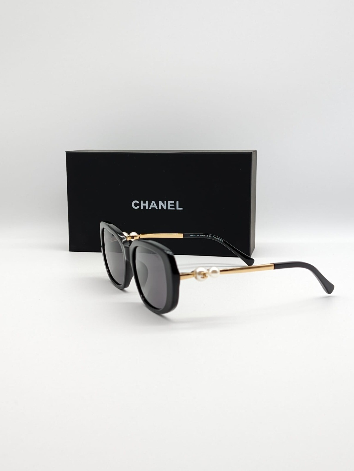 Brand New CHANEL CH5427-H Pearl Sunglasses – Black & Gold Frame with Gray Lenses