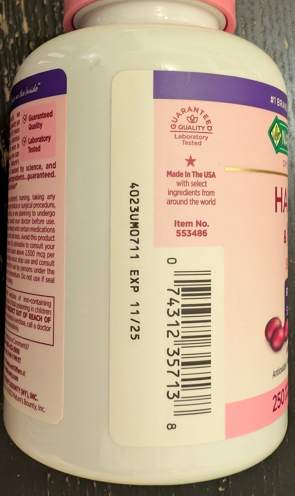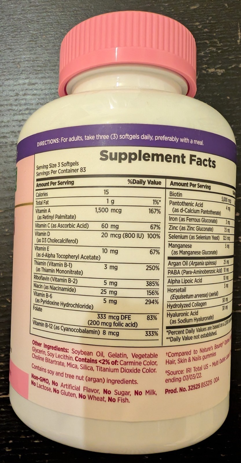 Nature's Bounty Hair, Skin and Nails Softgels. with 5,000 mcg Biotin per Serving. Antioxidant Vitamins C E, Plus Hyaluronic Acid.
