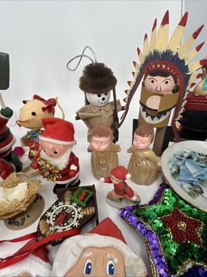 HUGE LOT Vintage Christmas Ornaments & Decorations 33 Pcs Handmade Collectible