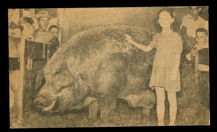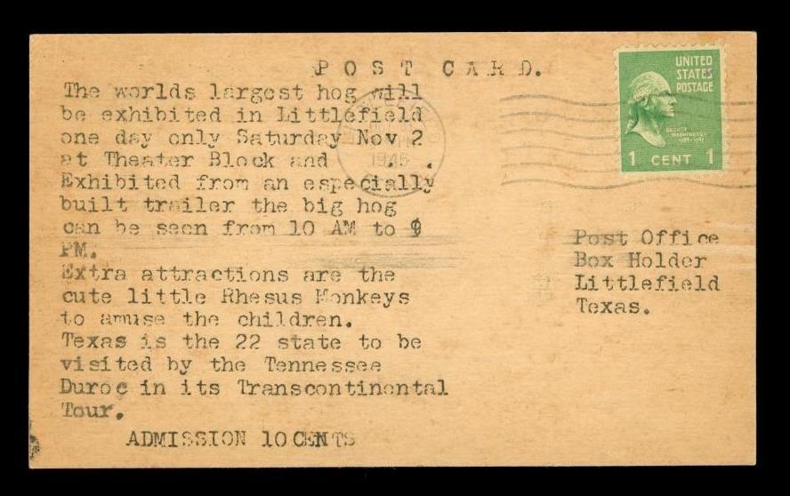 Vintage Postcard Littlefield Texas World's Largest Hog 1946 Tennessee Duroc Pig