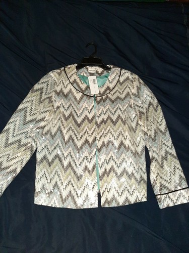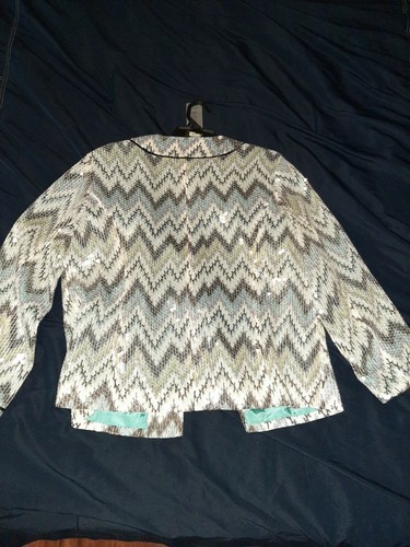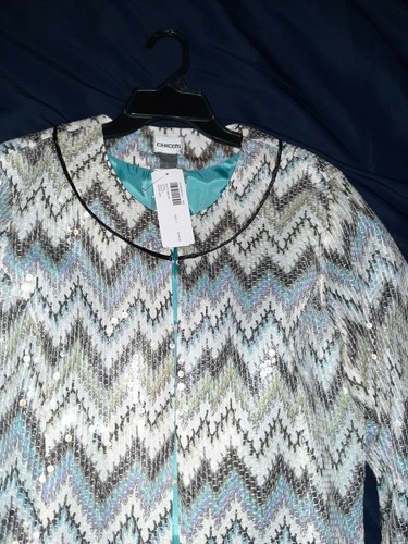 NWT Chico's Women's 2 (12) Shimmer Kat's Meow Sequin Jewel Jacket Seascape