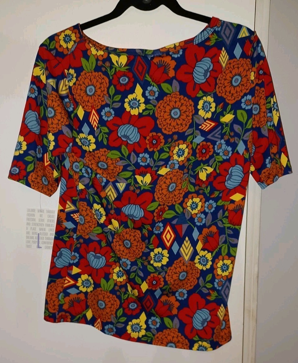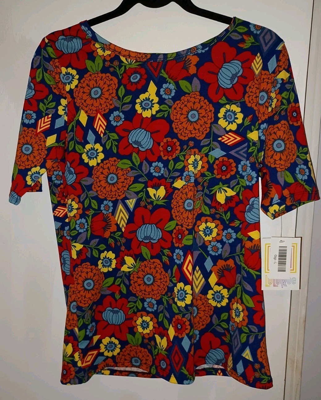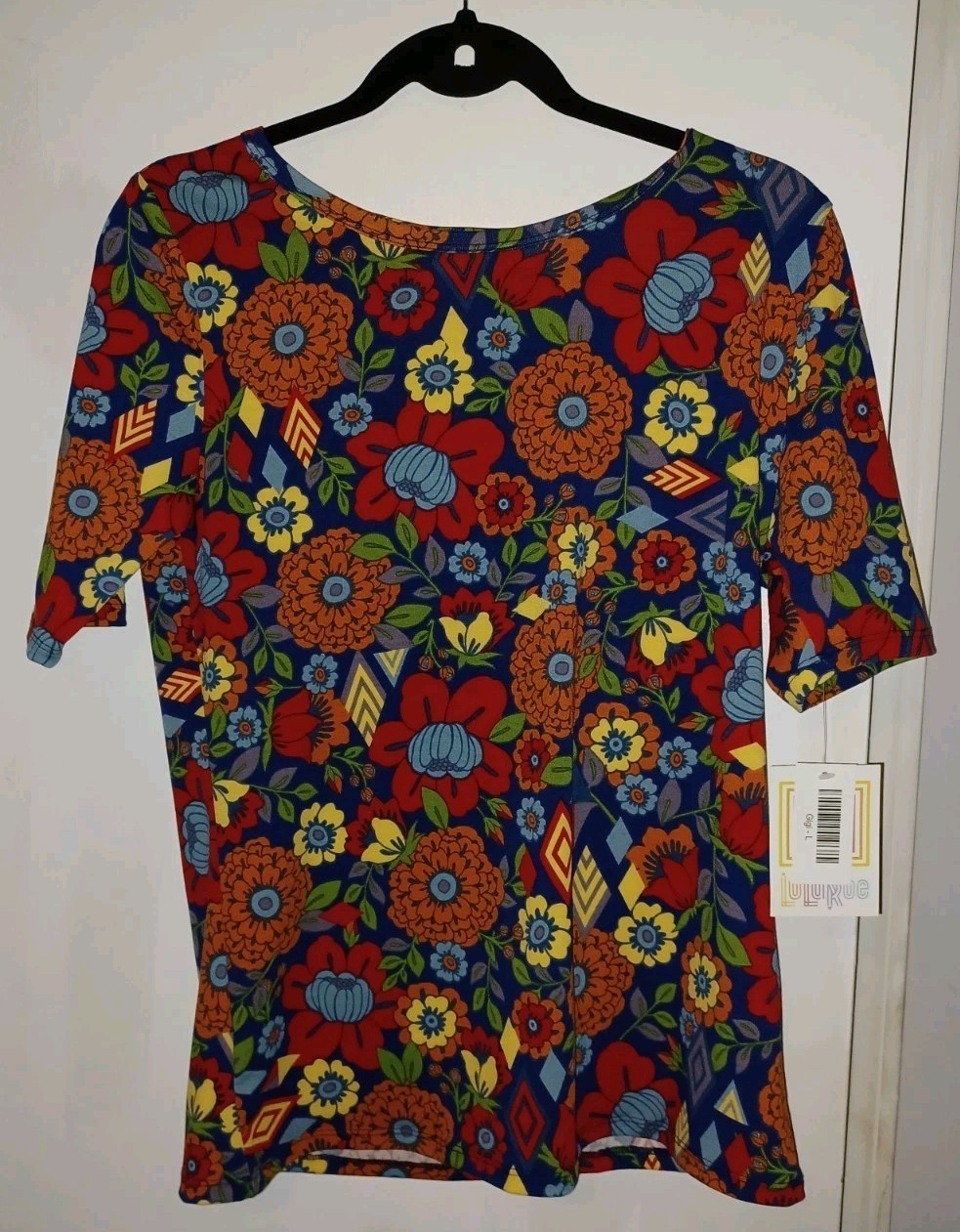 NWT Lularoe Gigi Top Women?s Size L Blue Multicolor Floral Short Sleeve