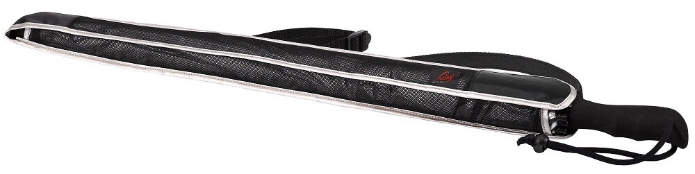 Convenient protection case with net insertion for optimum airing; the closed umbrella can be back carried comfortably thanks to the slip-free, adjustable carrying belt