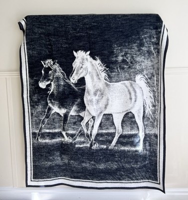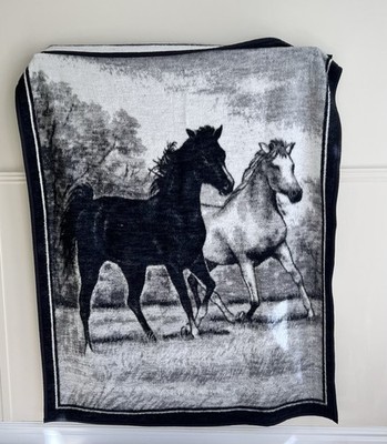 Vintage Biederlack Equestrian Horse Blanket Reversible Throw 56x72 Made In USA