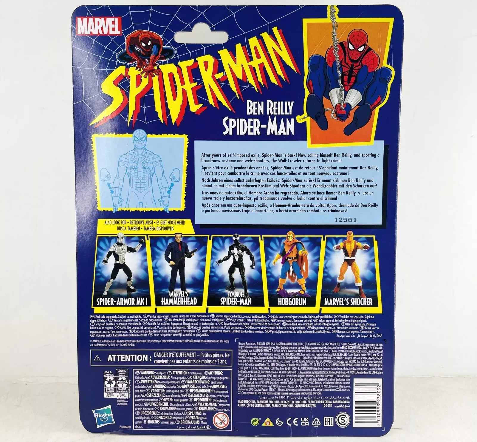 The product is a 6" action figure of Ben Reilly Spider-Man from the Marvel Comics Legends series. This retro edition was released at San Diego Comic Con in 2022 and features the character with clothes, boxed in its original packaging, and is part of the 1st edition release. The action figure is based on the Spider-Man TV show and movie, licensed by Disney and Hasbro, and pays homage to the character's creator Stan Lee and actor Tom Holland. Made of ABS plastic, this collectible item is a must-have for fans of the Spider-Man franchise and action figure enthusiasts.