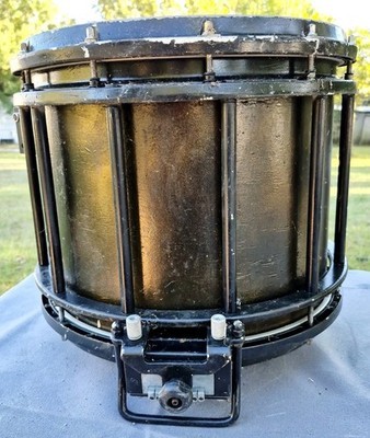 Used drum which comes as shown. For parts or to be repaired. A few pieces of hardware missing. Has been spray painted black and gold, the school colors in Louisiana I purchased it from. Bottom pad needs replaced. The drum shown is the one buyer will receive. No warranty offered and no returns accepted. By purchasing buyer is agreeing to these terms.