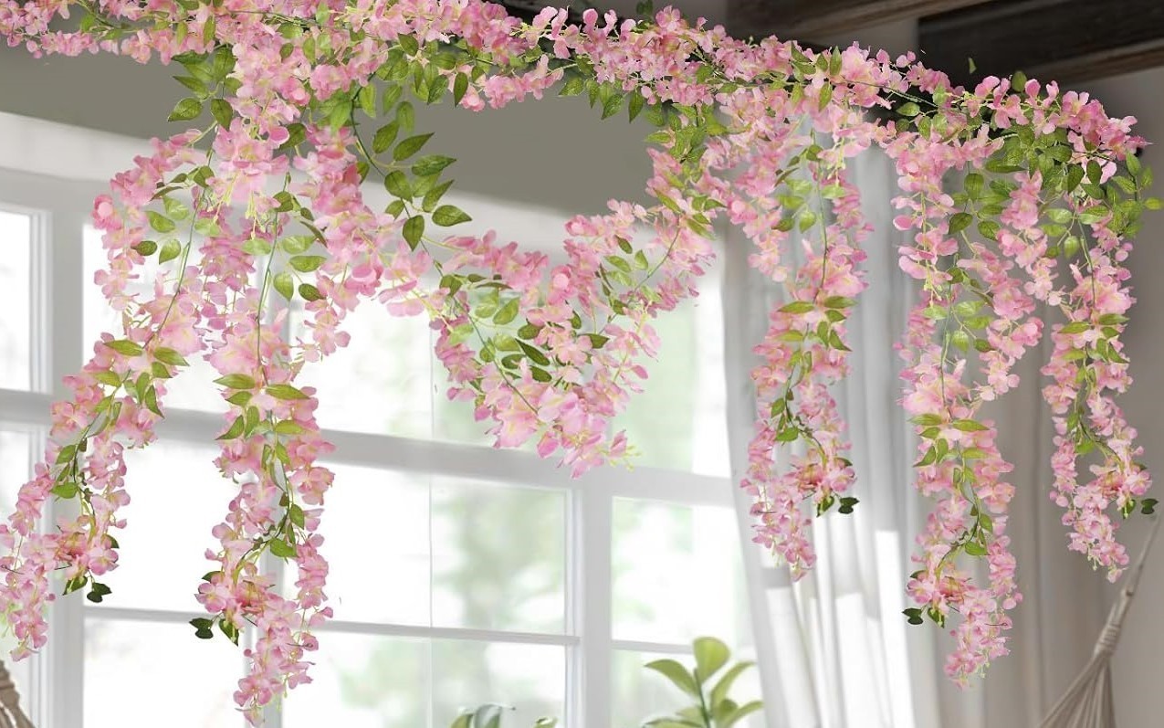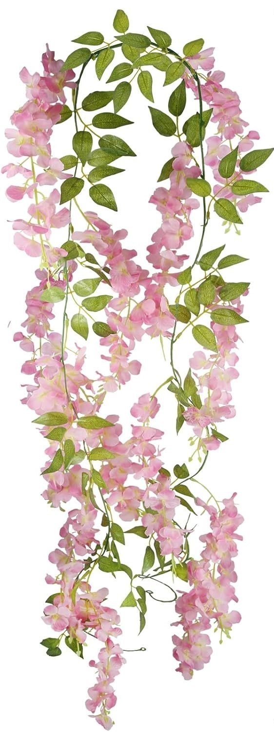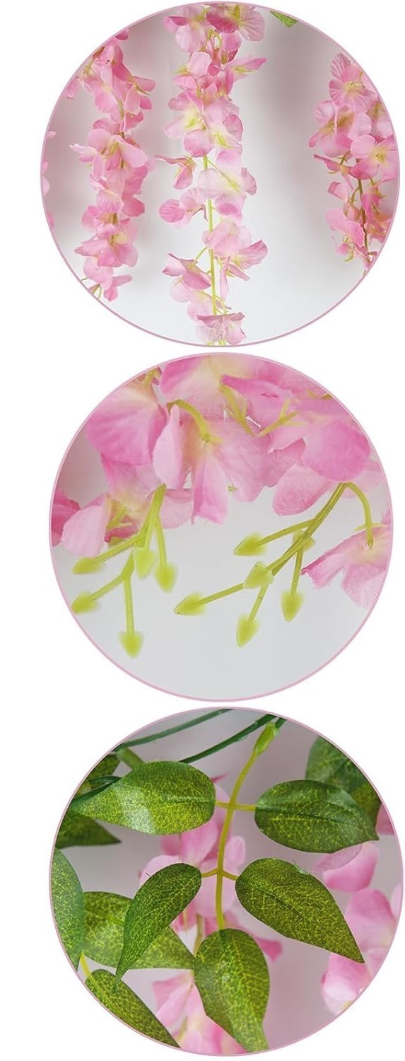 2 Pcs Artificial Wisteria Hanging Flowers Pink