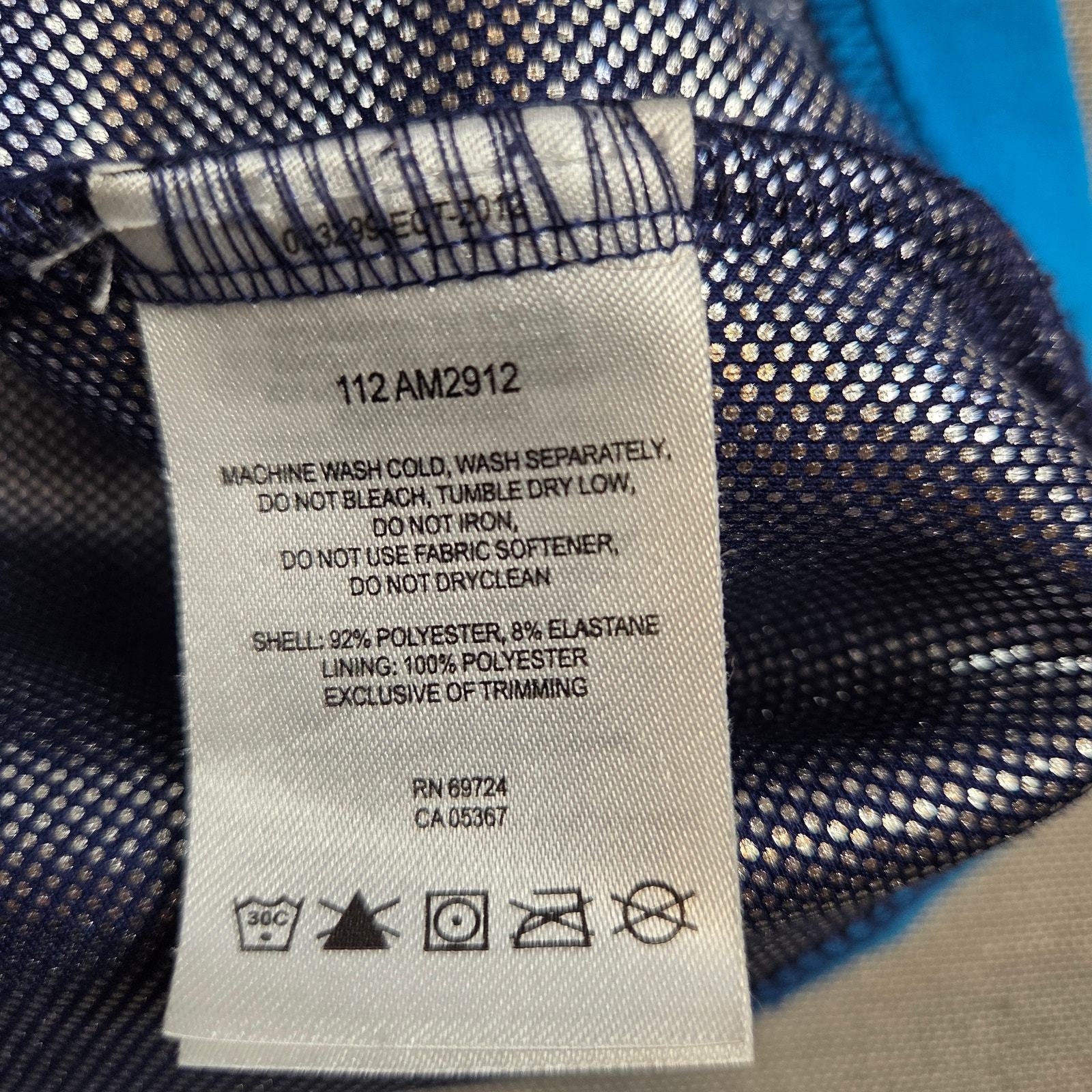 Shell: 92% polyester, 8% elastane