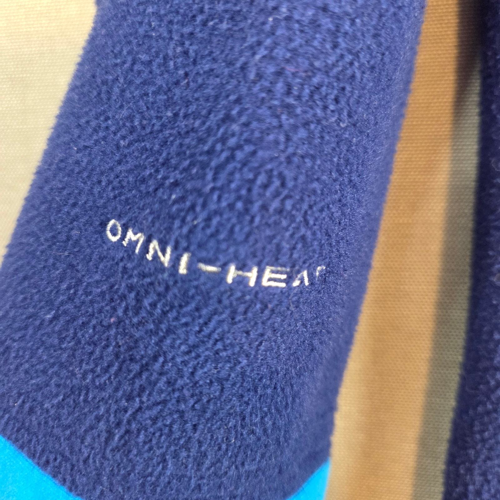 This Columbia Omni-Heat quarter-zip pullover combines lightweight warmth with reflective lining technology to retain body heat. Made of a polyester-elastane blend with a soft fleece shell and metallic Omni-Heat lining. The original size tag is missing, but based on measurements it fits like a men?s Large.