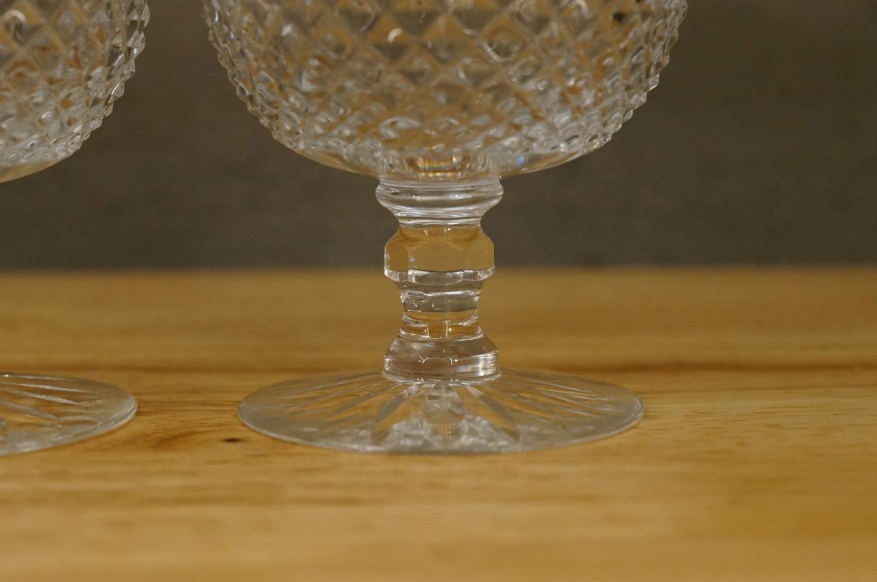 Vintage Set Crystal Brandy Cognac Snifter Hobnail Fan Pattern Stemware Glasses