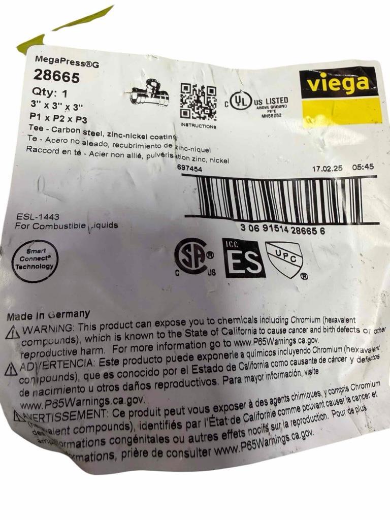 NEW Viega MegaPress 28665 3" x 3" x 3" P1 x and 49 similar items