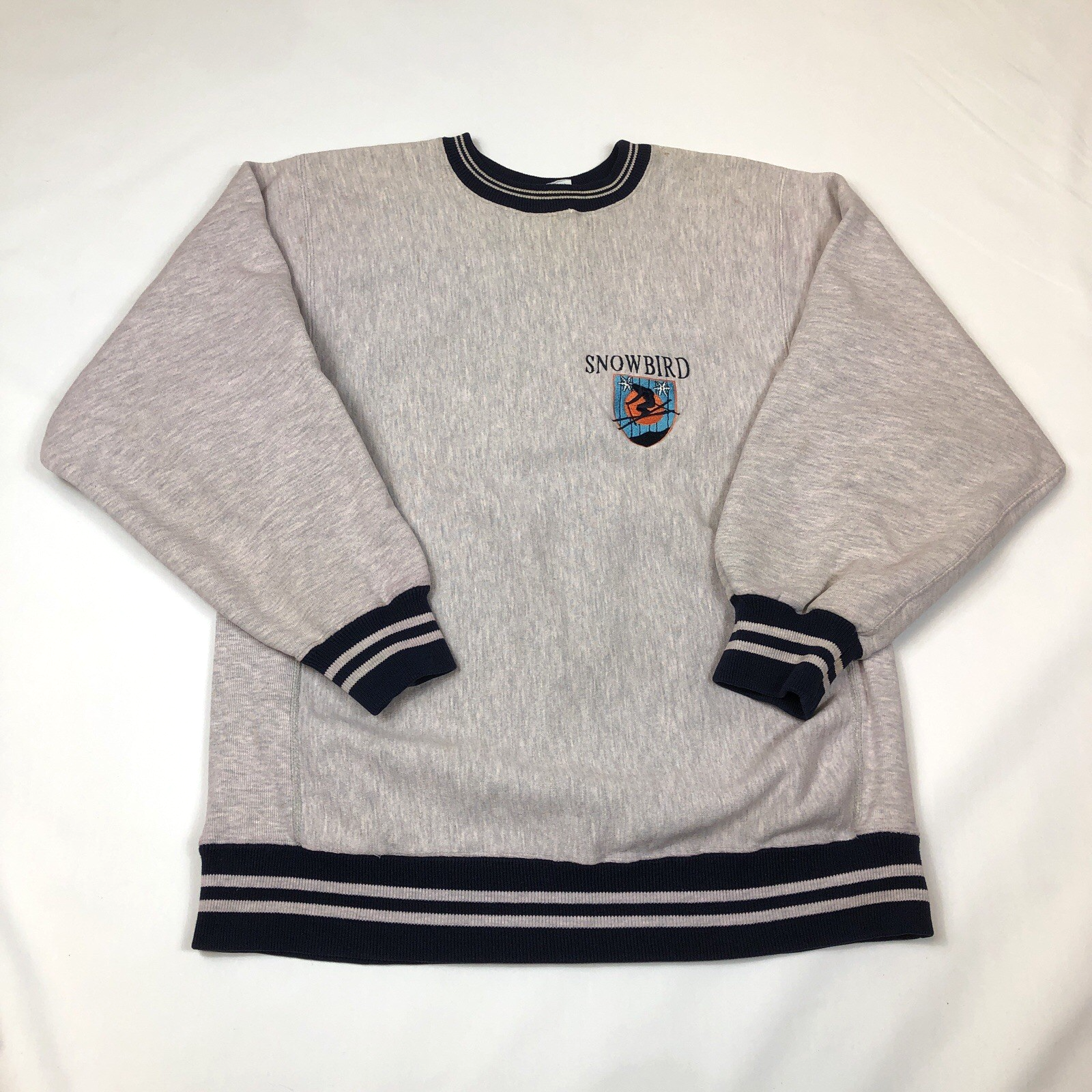 Vintage Champion Reverse Weave Snowbird Ski Resort Gray Crewneck Sweatshirt Larg