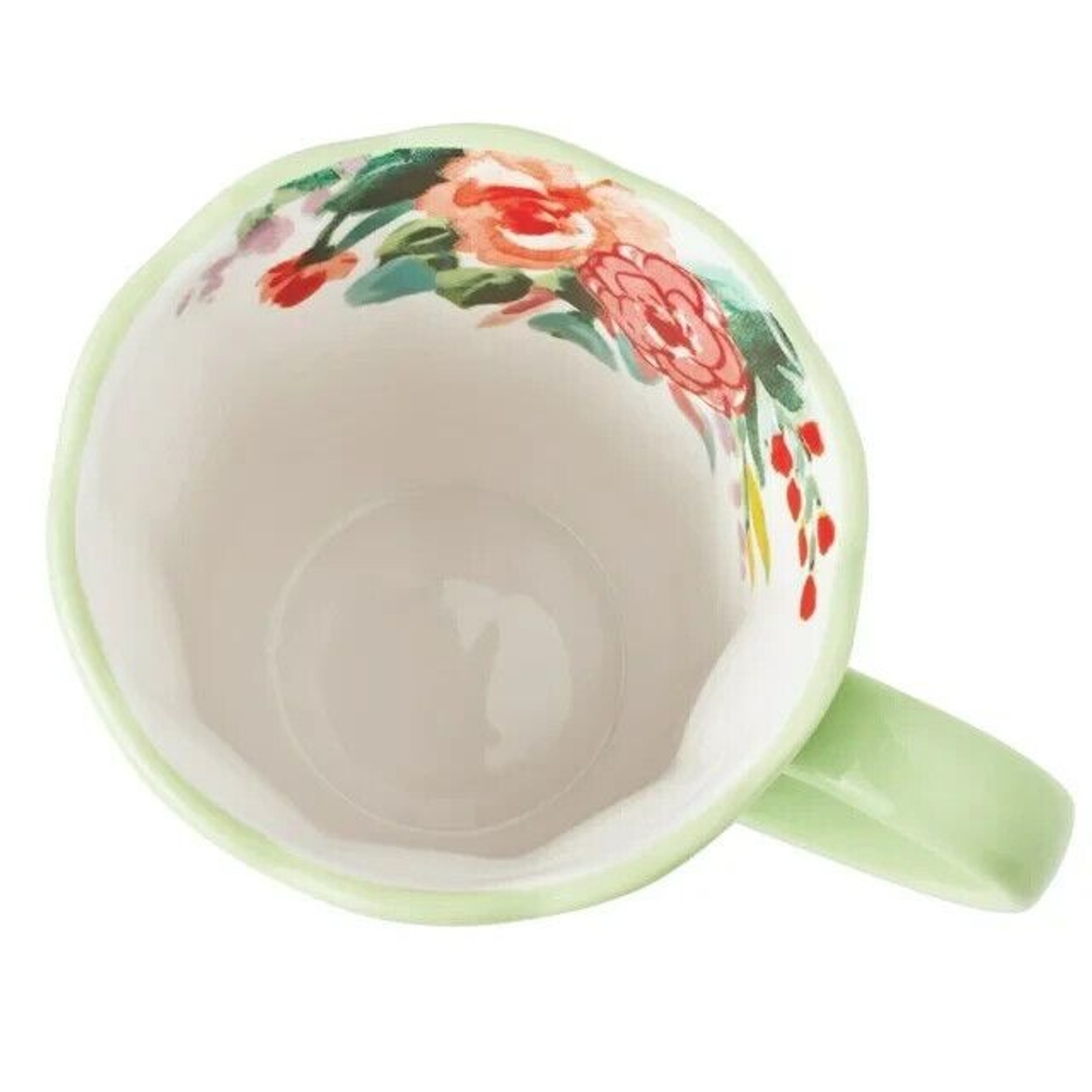 Pioneer Woman Painted Meadow 4 Ceramic Mugs Cups Green Floral Kitchen Drinkware