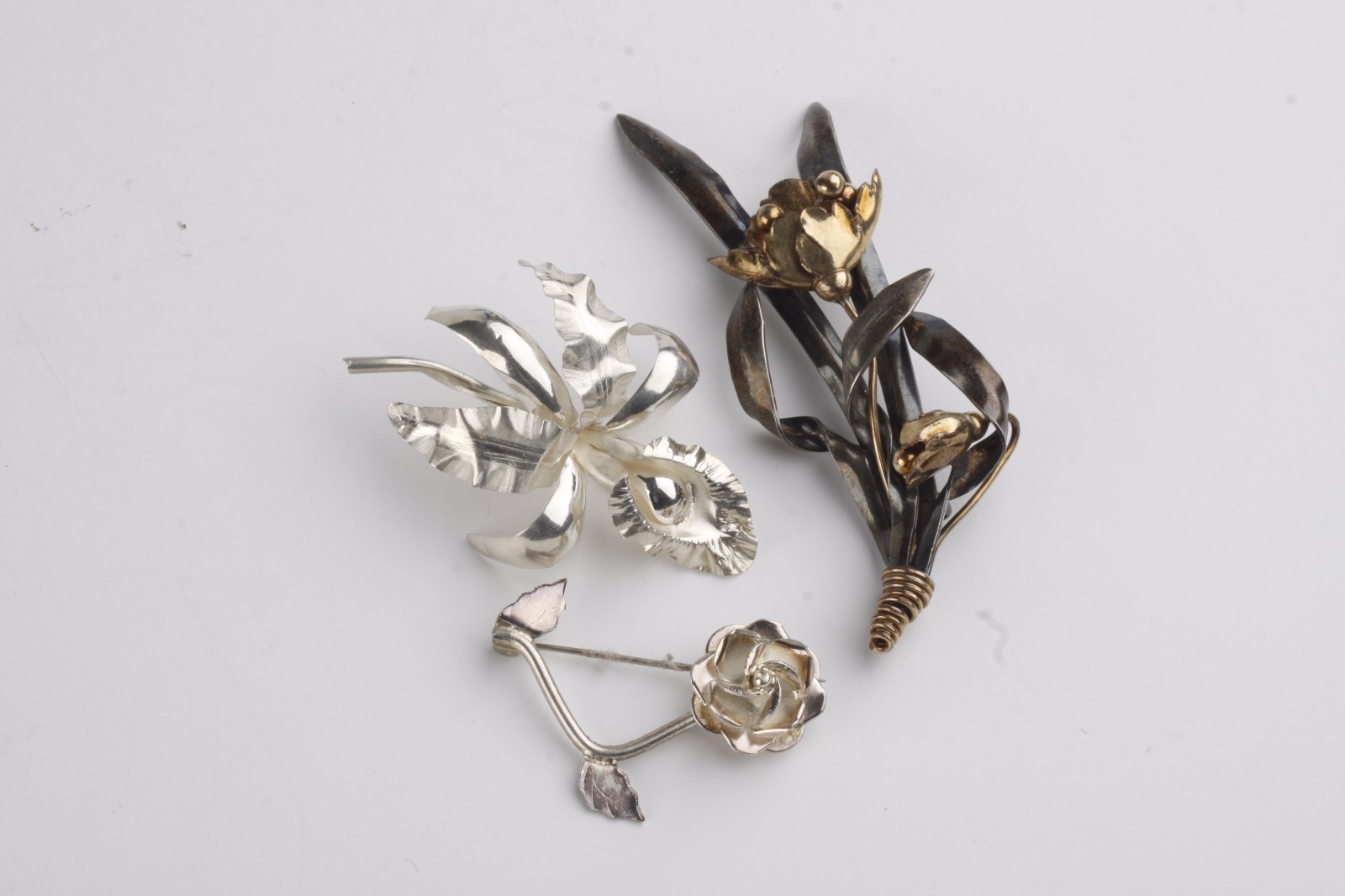TROIS (3) BROCHES DE FLEURS EN ARGENT MASSIF VINTAGE