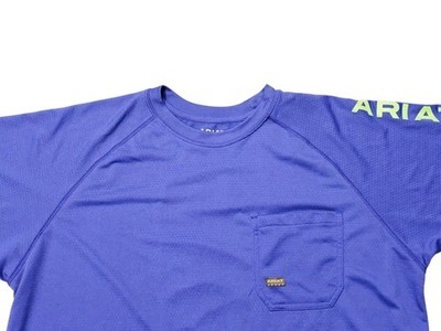 The Men's Ariat Rebar Heat Fighter T-Shirt in Royal Blue Size XL is a classic, relaxed fit t-shirt made from a comfortable cotton blend knit fabric. This solid blue shirt features a crew neck and short sleeves, suitable for all seasons including summer, fall, and spring. It is machine washable for easy care and includes a logo accent. With a Western, outdoor theme, this t-shirt is perfect for everyday wear and includes a convenient pocket detail. Made in Pakistan as part of the Rebar Heat Fighter product line, this t-shirt is a stylish and practical addition to any man's wardrobe.
