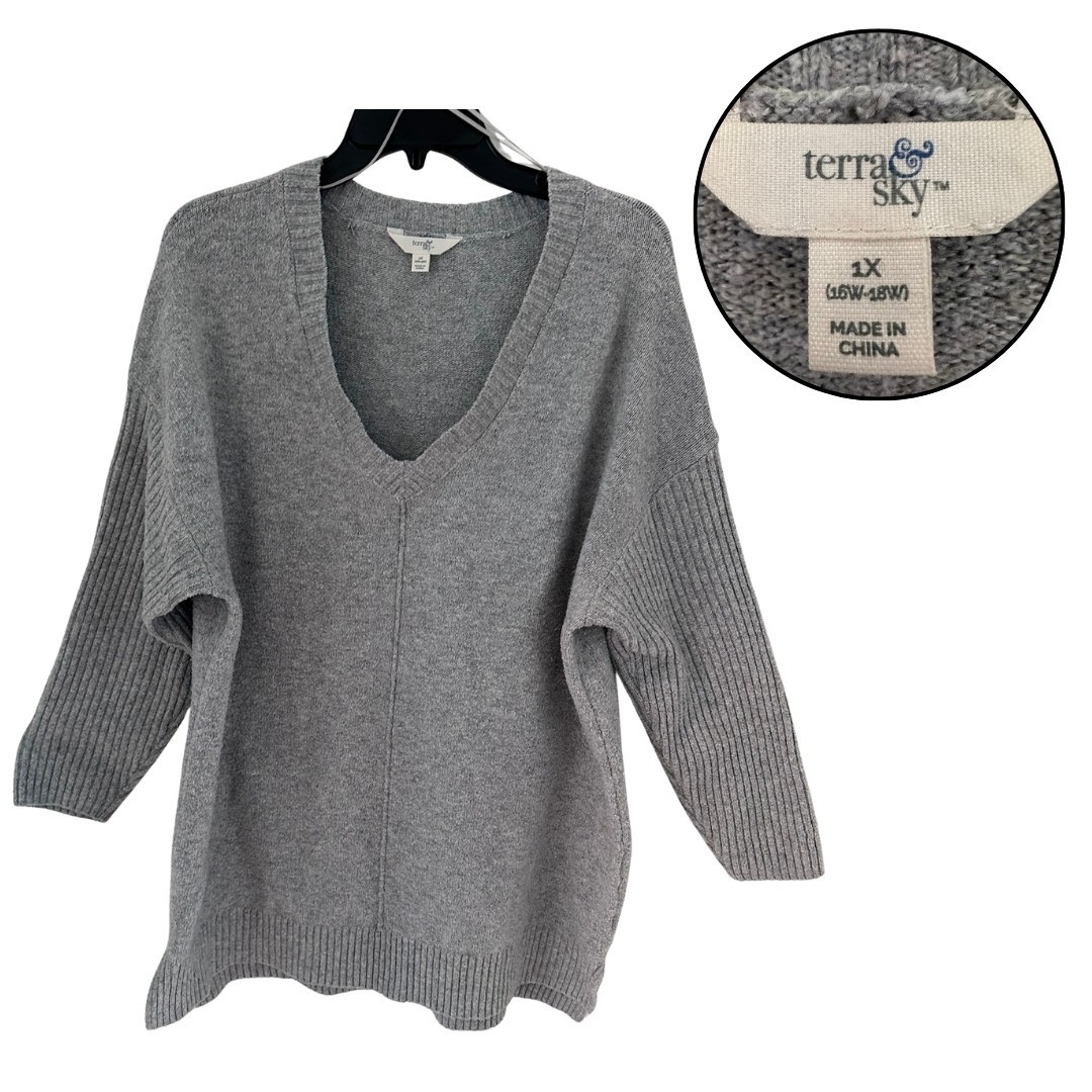 Terra & Sky Women’s 1X Gray Knit Sweater and similar items