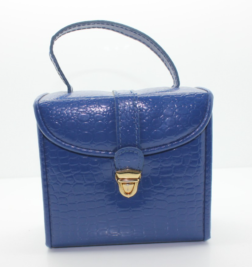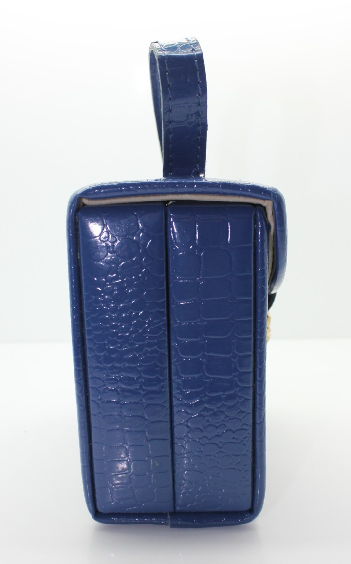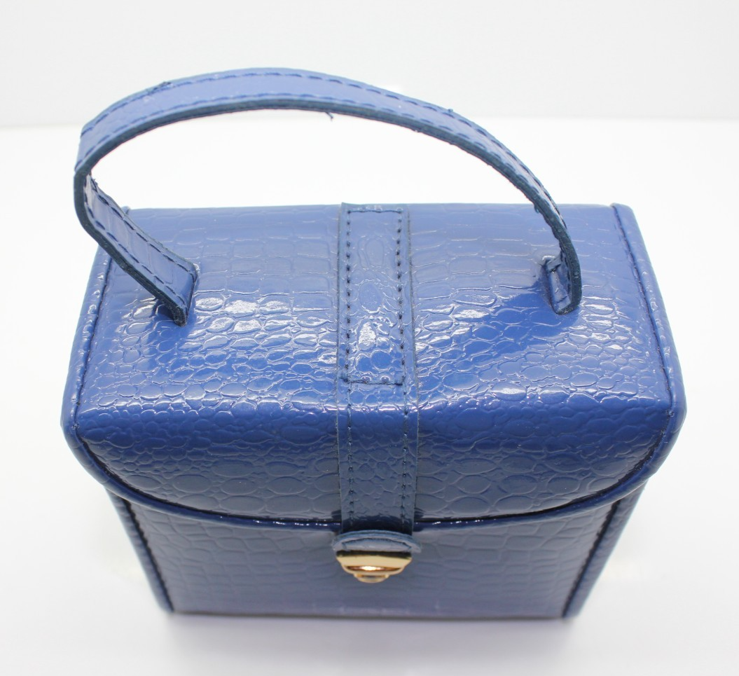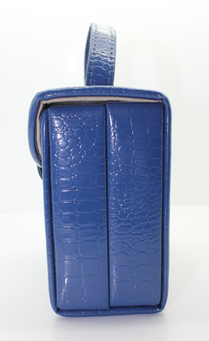 Retro Blue Faux Leather Mini Jewelry Traveling Case Organizer