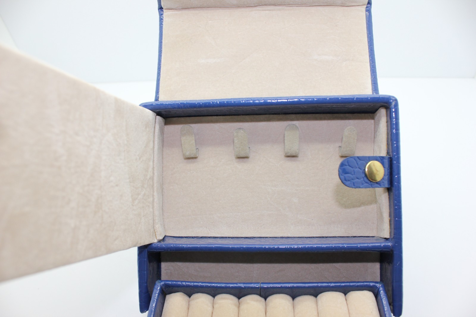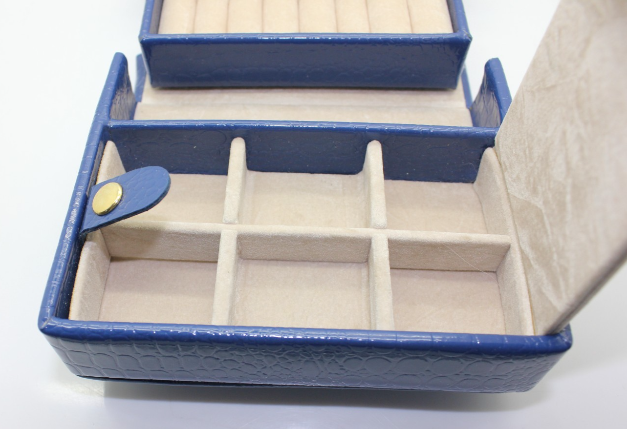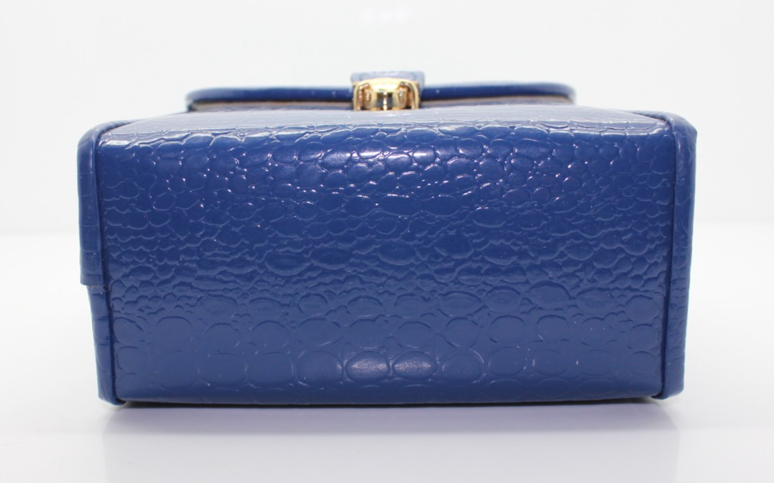 Retro Blue Faux Leather Mini Jewelry Traveling Case Organizer