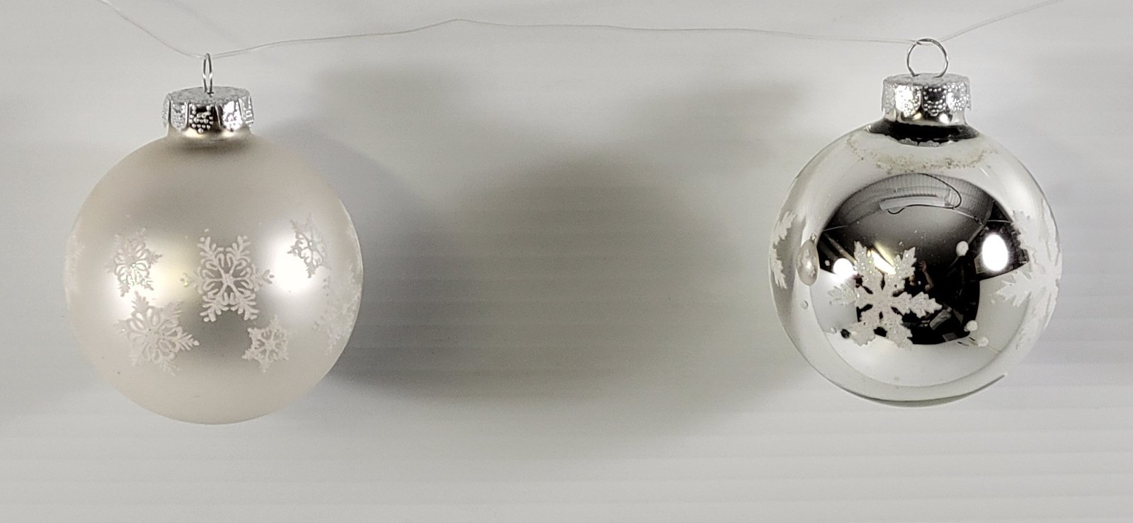 P) Mixed Pair 2 Vintage Rauch Christmas Snowflake Glass Ball Ornaments