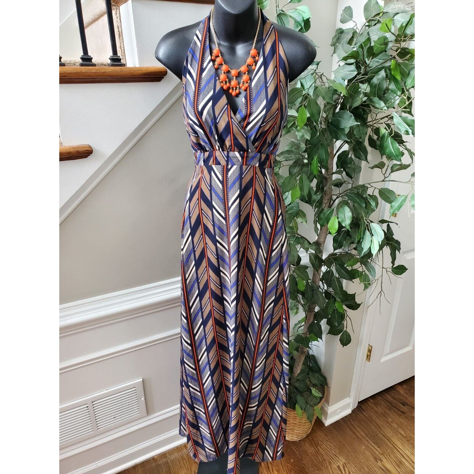 Multicolor Women's Polyester Halter Neck Sleeveless Casual Long Maxi Dress XS