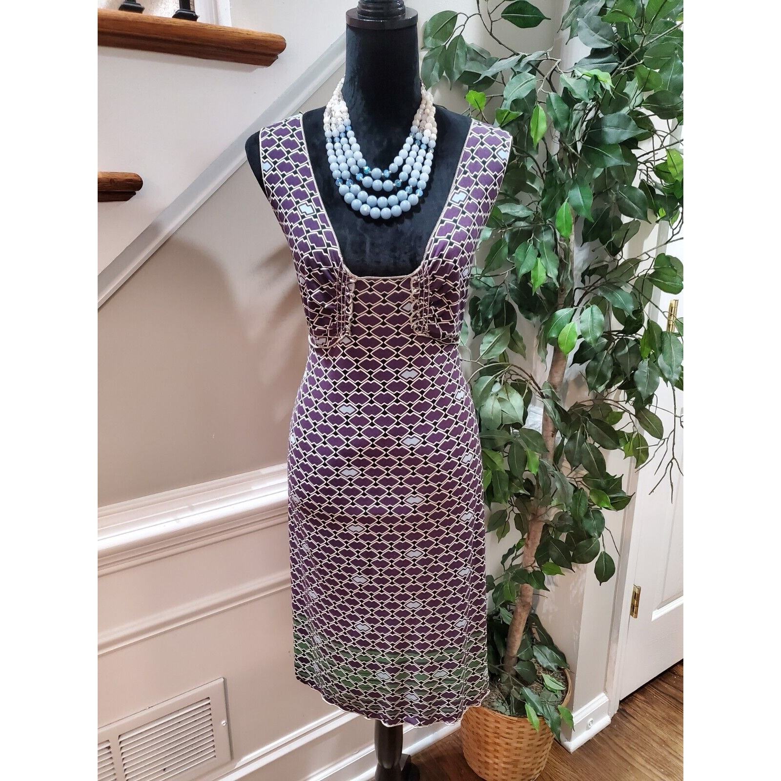 M.S.S.P Women's Purple Polyester Square Neck Sleeveless Knee Length Dress Size L