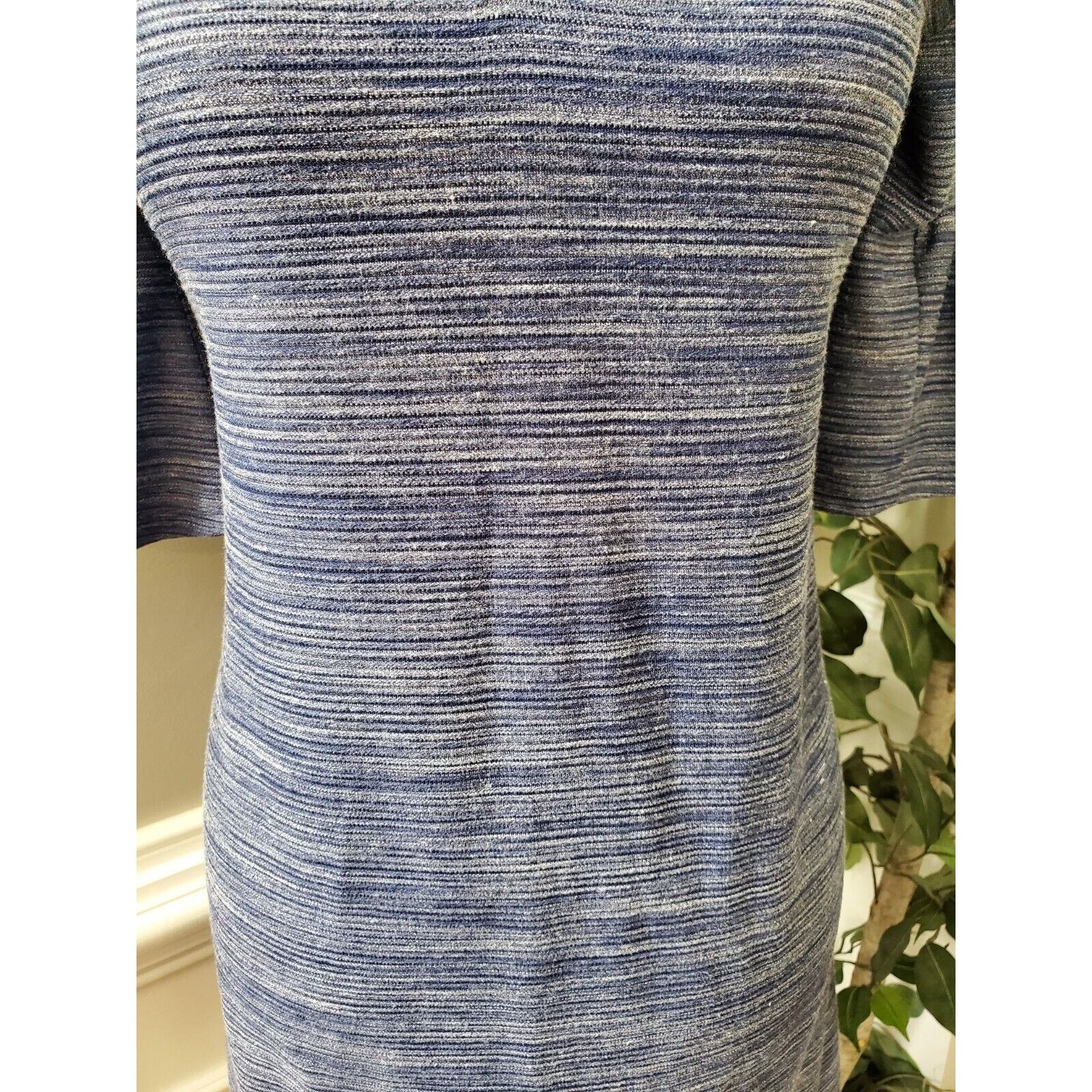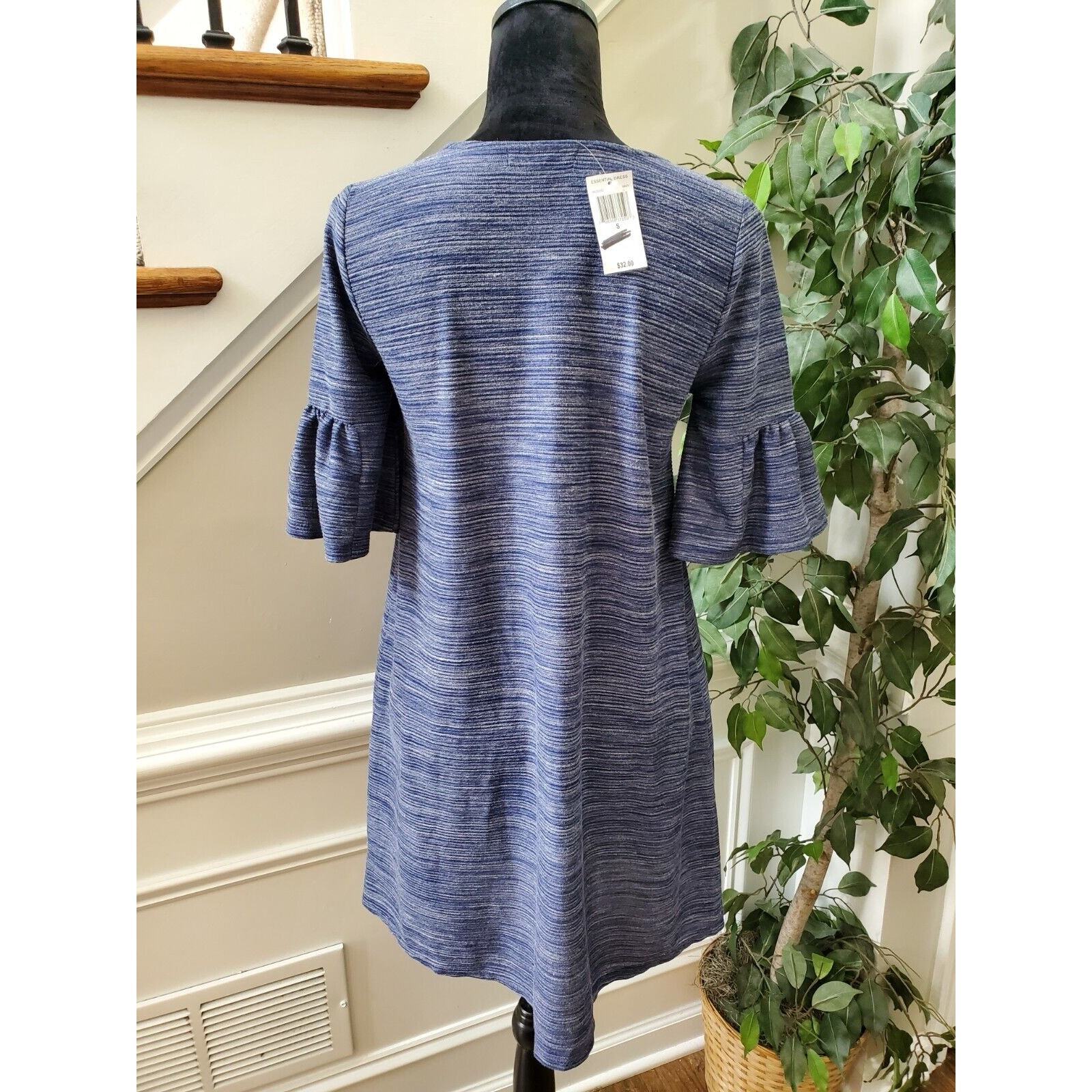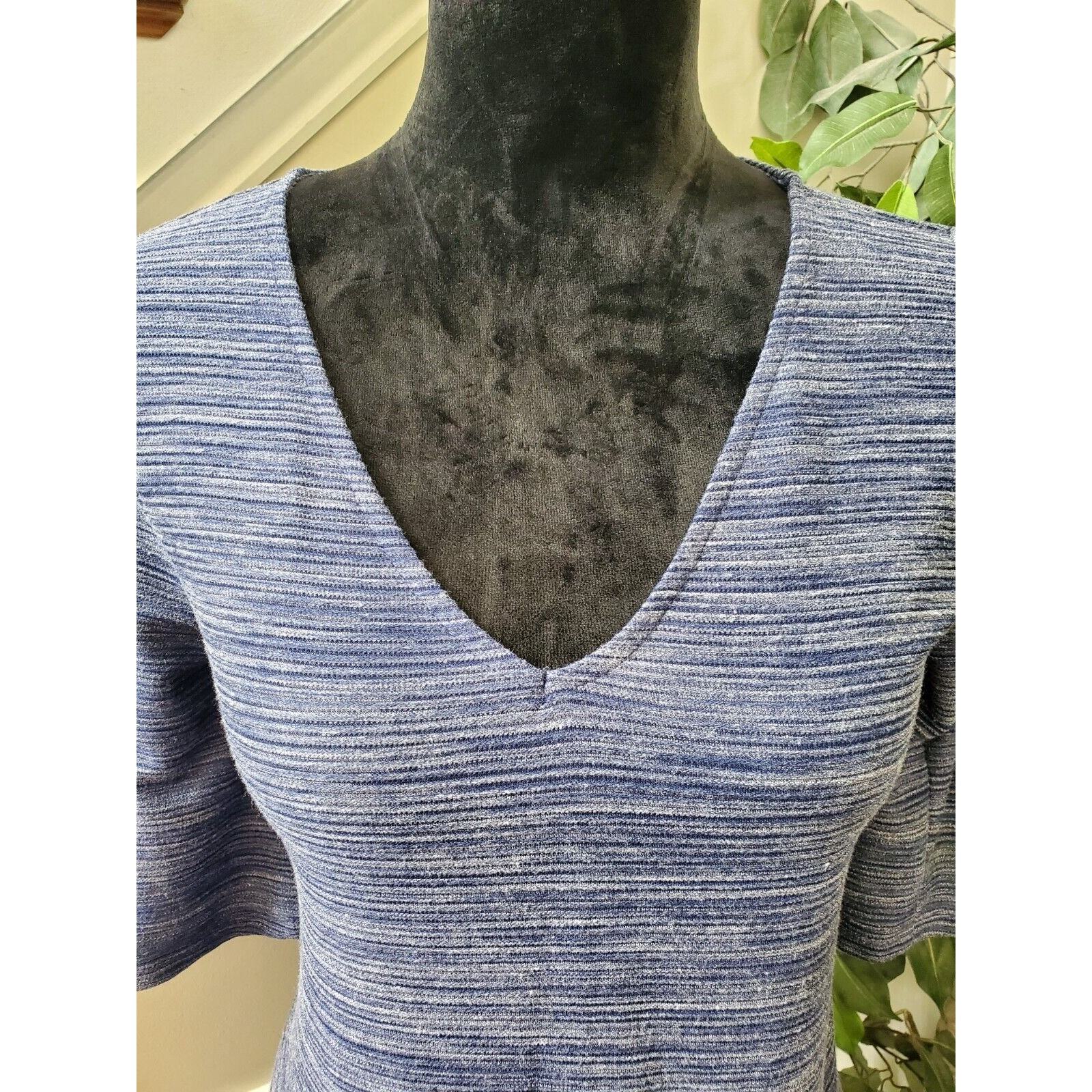 Women's Blue Striped Polyester V-Neck 3/4 Sleeve Knee Length Dress Size Small.