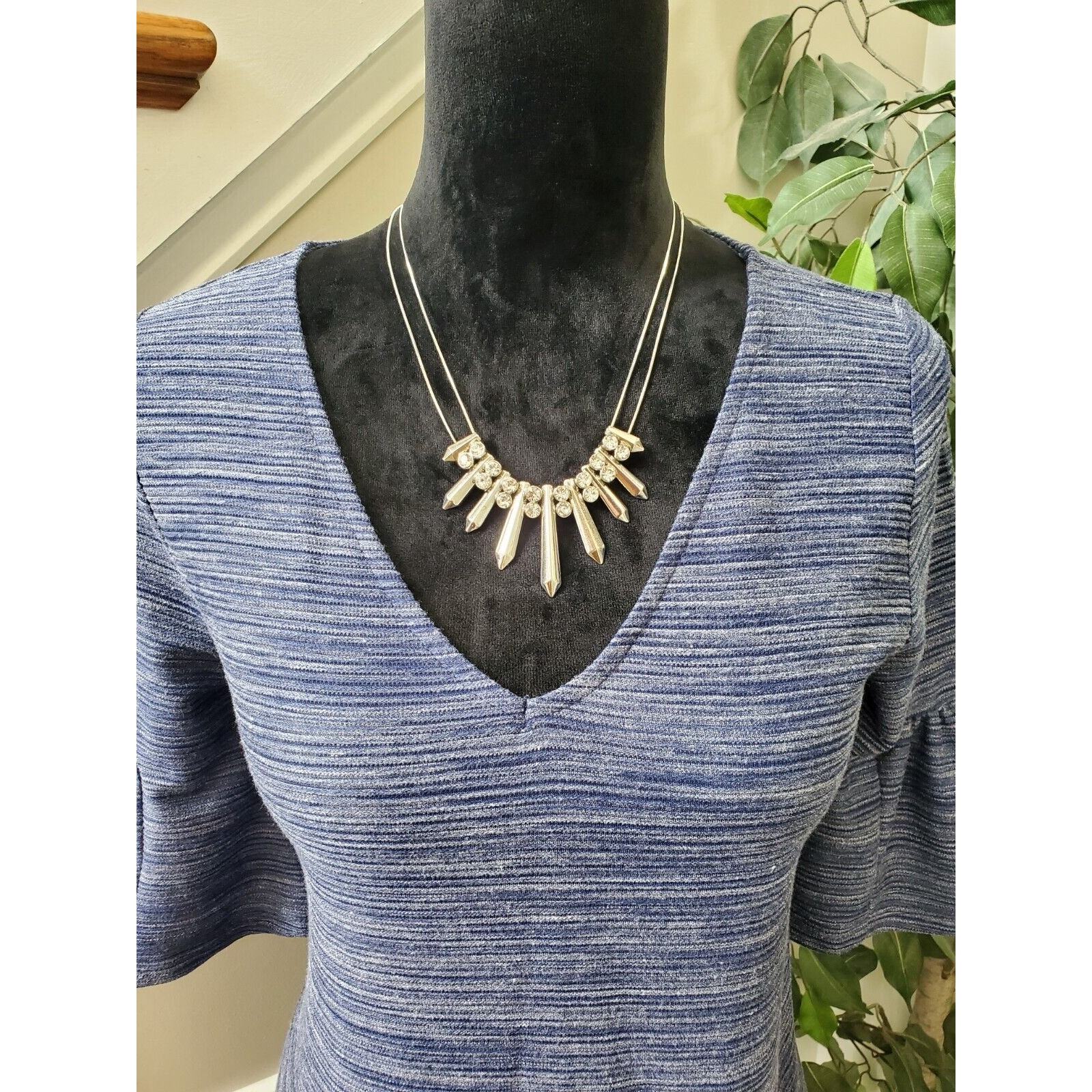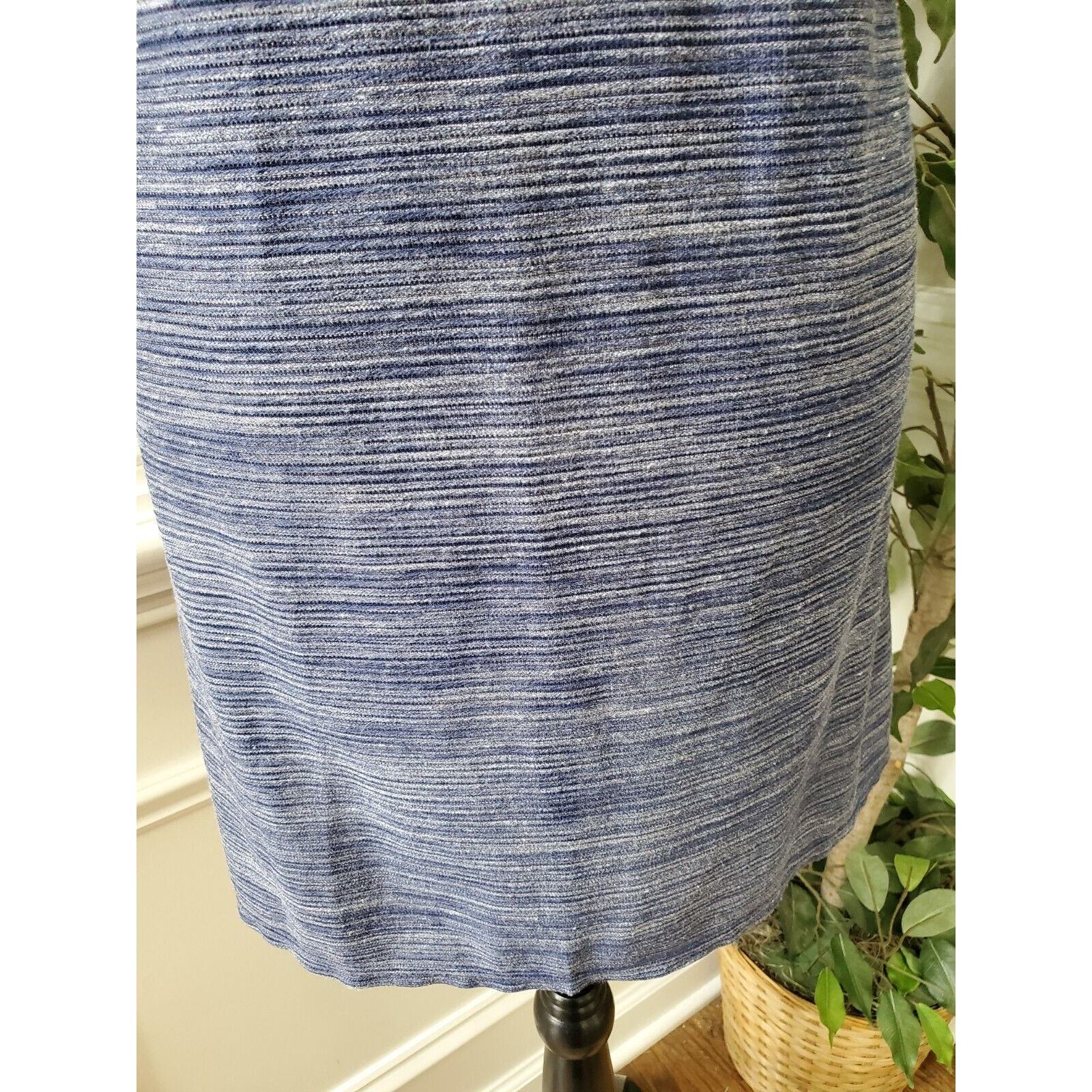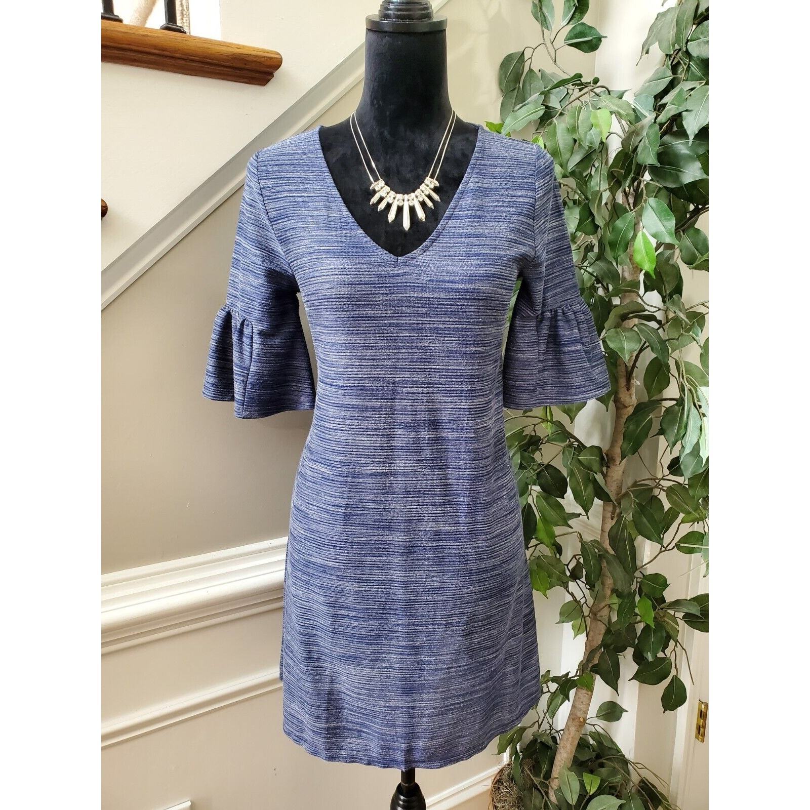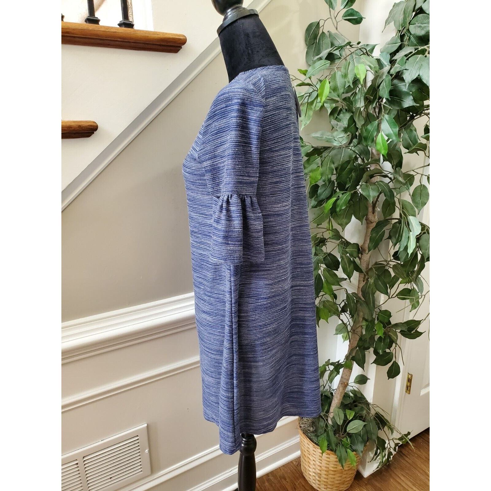 Women's Blue Striped Polyester V-Neck 3/4 Sleeve Knee Length Dress Size Small.