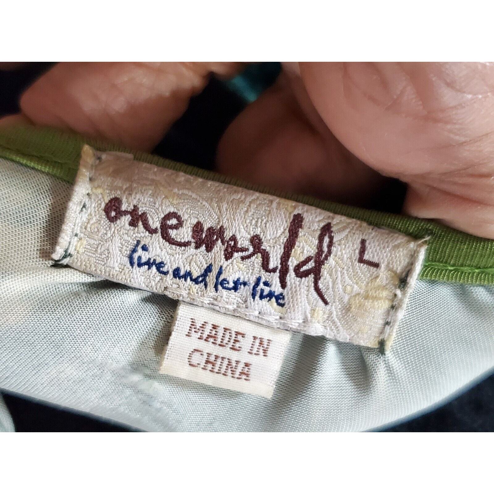One World Women's Blue Polyester Scoop Neck Long Sleeve Knee Length Dress Size L.