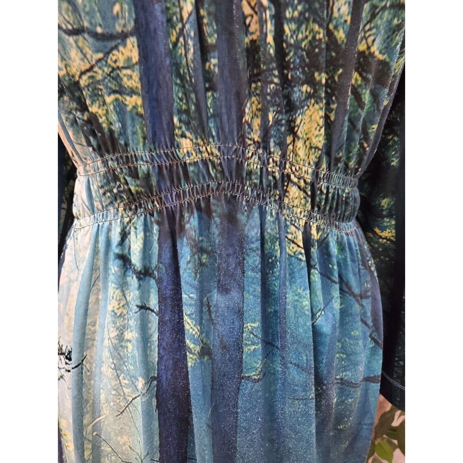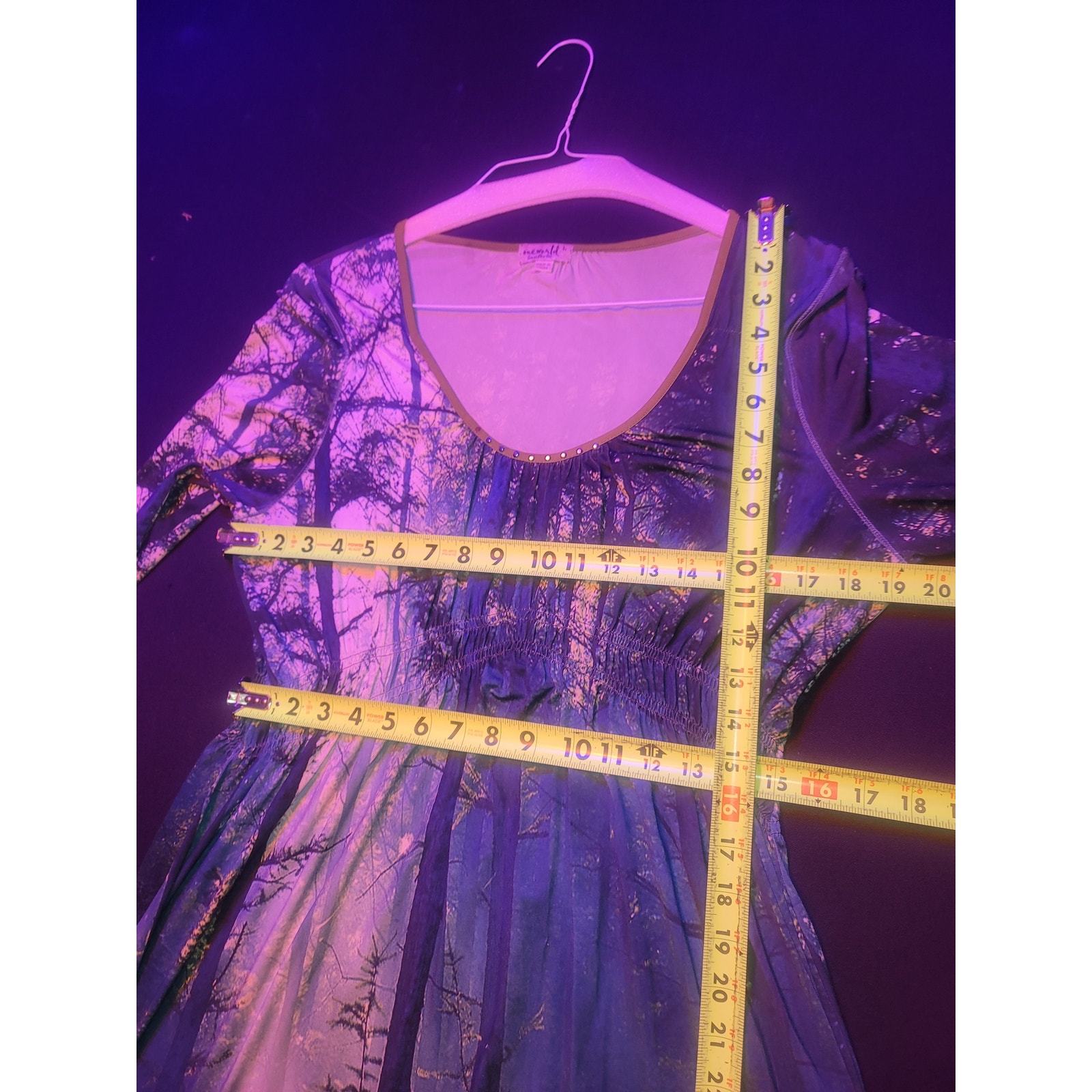 One World Women's Blue Polyester Scoop Neck Long Sleeve Knee Length Dress Size L
