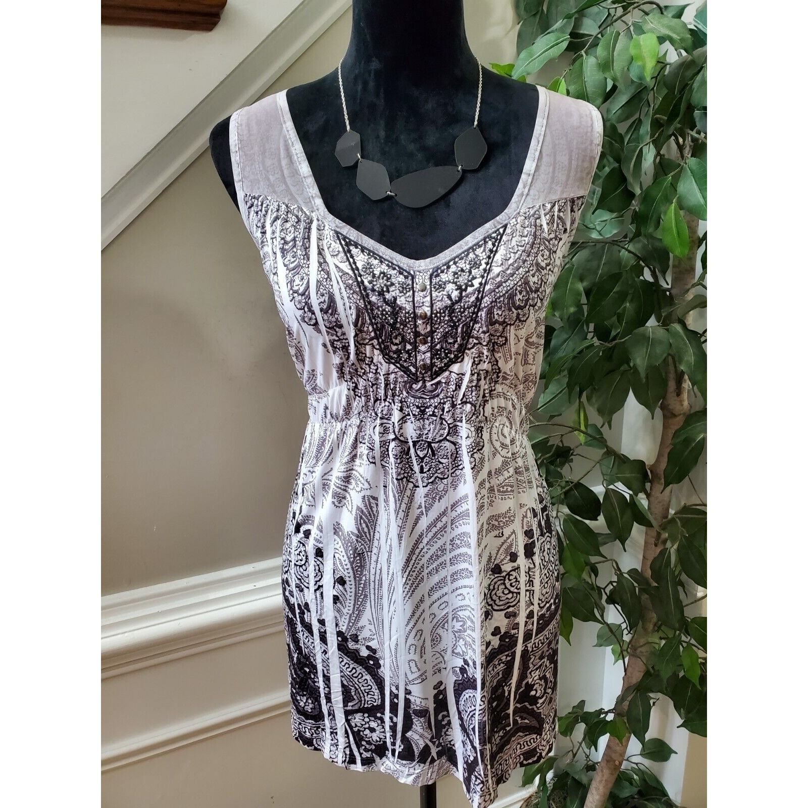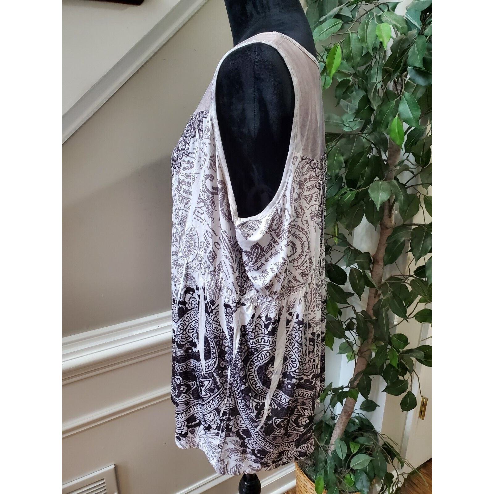 One World Women's Gray Polyester Sweetheart Neck Sleeveless Casual Top Blouse XL.