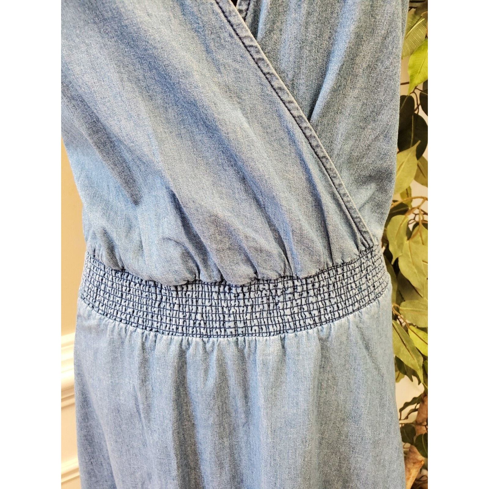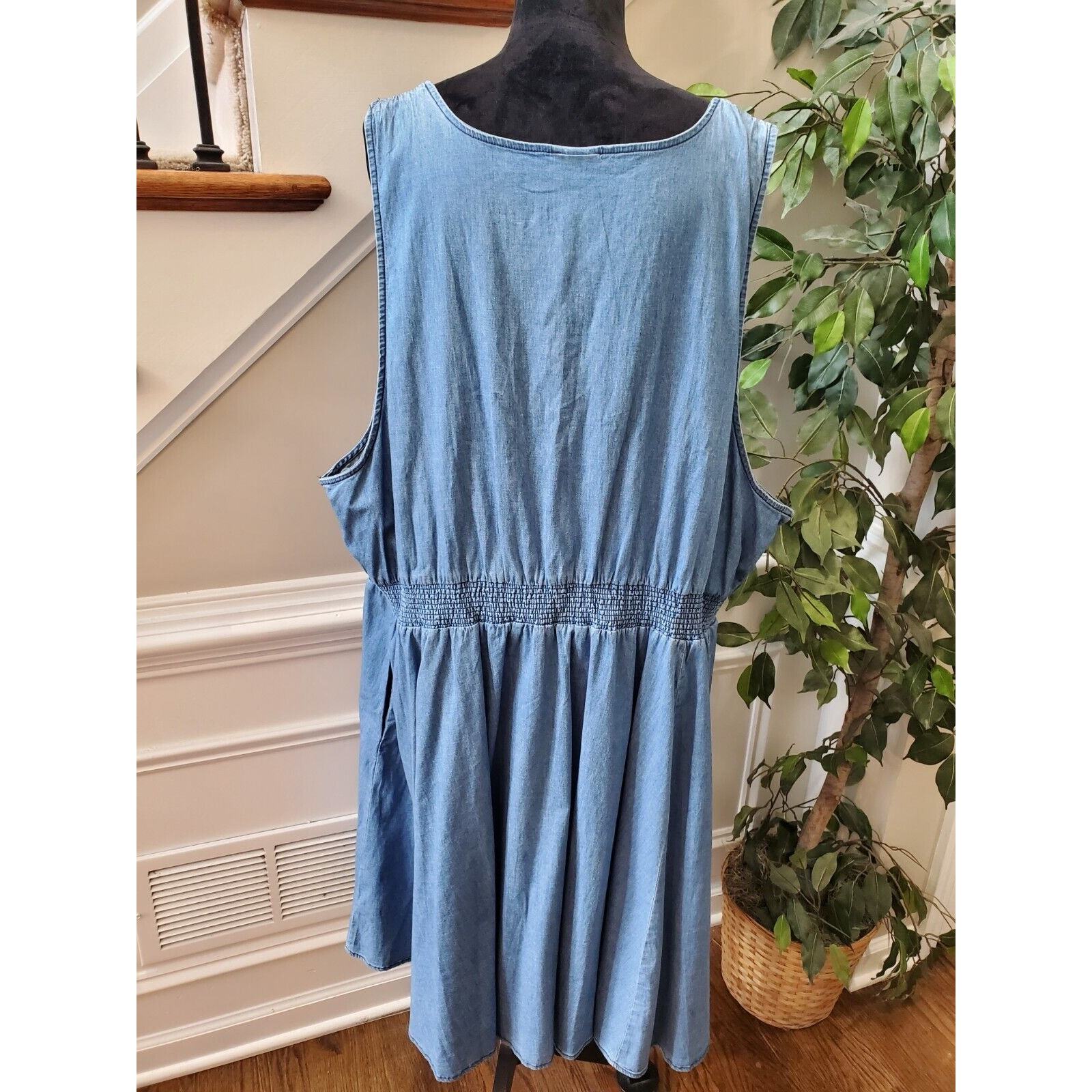 Blu Dahlia Women's Solid Blue Cotton V-Neck Sleeveless Knee Length Dress Size 3X