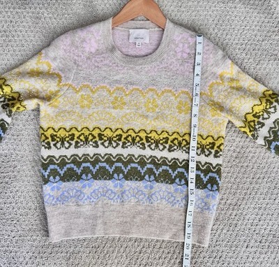 Cinq à Sept Lace Fair Isle Pullover Sweater XS Lightweight Silver Tone Studs