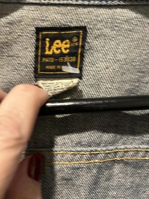 Classic men's denim jacket by Lee featuring unique artistic painting on the back.