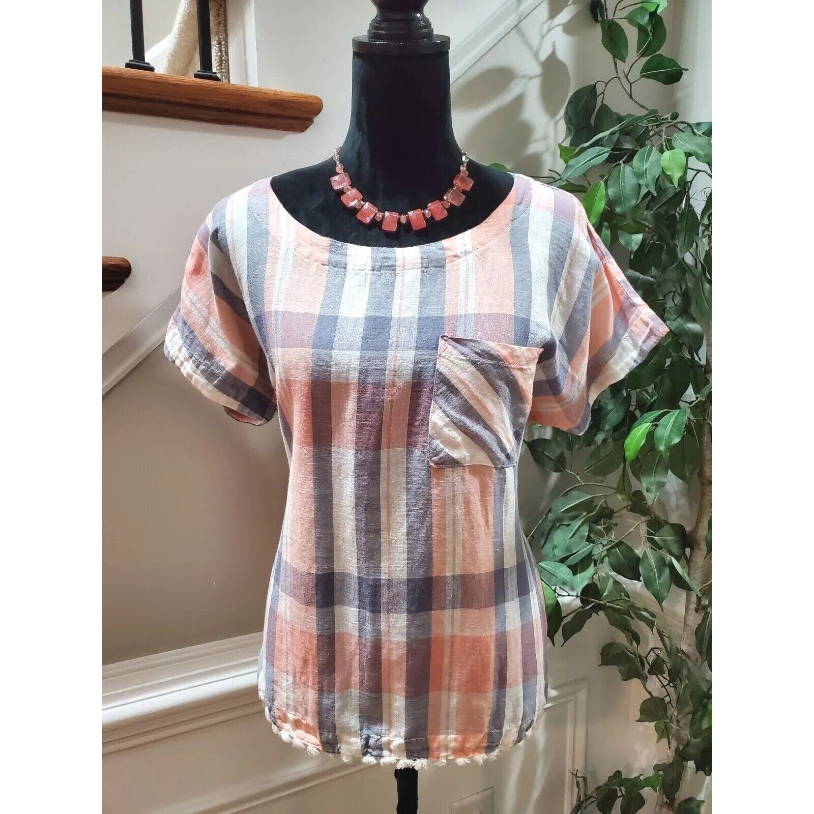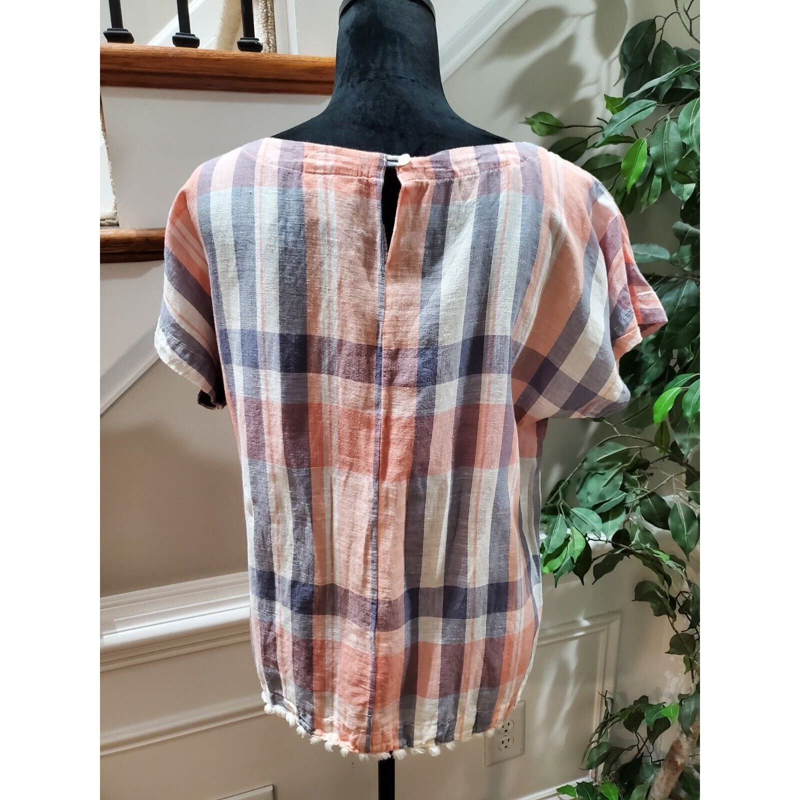 Liz Claiborne Women's Multicolor Linen Round Neck Short Sleeve Pullover Shirt M