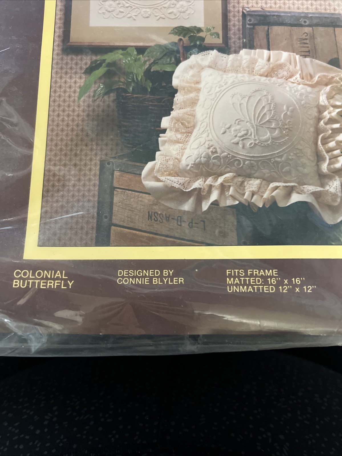 Sunset Stitchery "Colonial Butterfly" Vintage 1983 16” x 16”