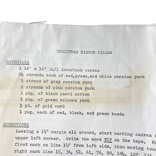 Vintage Noel Christmas Ribbon Pillow Kit by Raffetto 1977 Partially Completed