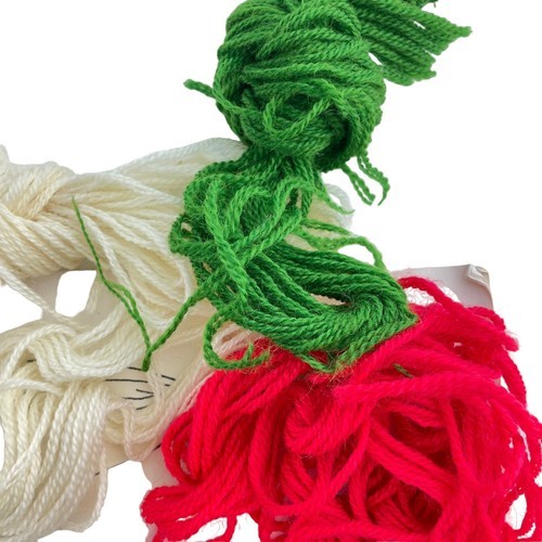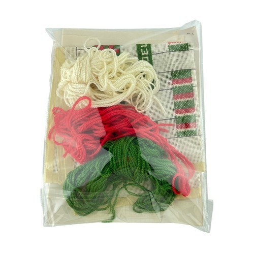Condition is good condition partial kit - canvas is partially completed, includes needle, directions and majority of yarn (red, green and white) to complete the design. See the materials list for other items required. See photos.