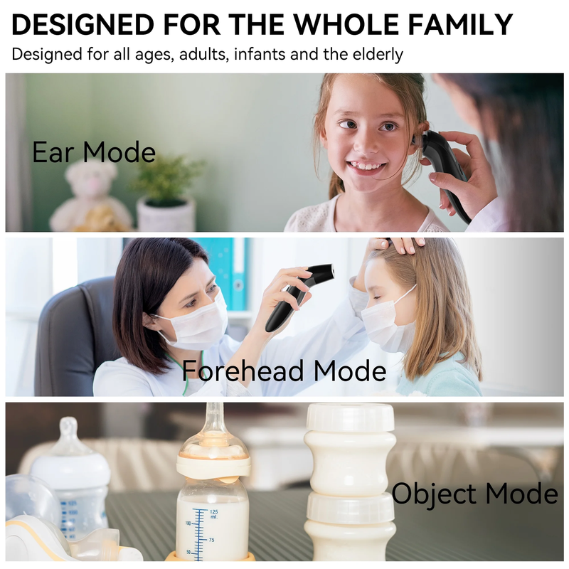 Multiple Functions: Temporal thermometer comes with a high-temperature alarm system, that displays green, orange, or red to indicate high temperature, green for normal, orange for light high temperature, and red for high temperature. 25 sets of memories and easy to recall. Auto shut down and power saving Reliable and Accurate: Our forehead thermometer comes with a German Hyman thermoelectric reactor infrared temperature sensor, a build ambient temperature compensation sensor, and a precision microprocessor. After thousands of clinical repeated tests, the measurement results are accurate 0.2?/0.4 F Large LCD Screen: Our infrared thermometer has a large LCD backlight screen. The value is clearly visible at night and has a silent mode that can be measured without waking up the children. Auto-off: The thermometer can automatically shut down after 10 seconds of not using it, saving you energy. What You Can Get: 1 Infrared thermometer, 2 AAA batteries, 1 user manual, 1 storage pouch