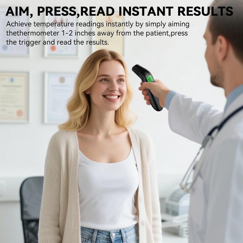 Dual Mode Infrared Thermometer, 1S Reading, 3 Colors Backlight, 25 Memories Reca