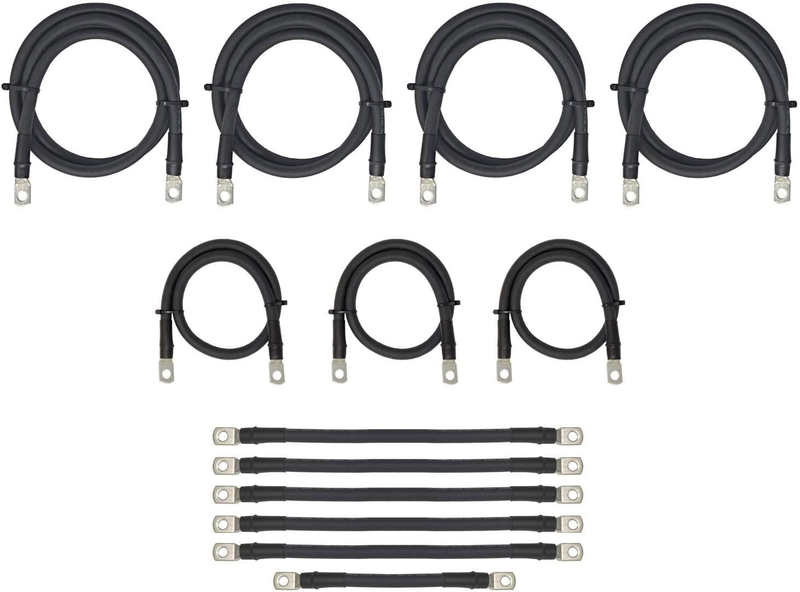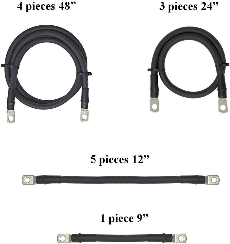 Includes 13 battery cables: 1 pc 9? cable, 5 pcs 12? cables, 3 pcs 24? cables, 4 pcs 48? cables. These cables will cover the wiring for the battery bank connections and motor/controller connections.