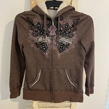 ?Vintage y2k Harley Davidson womens zip Sz S hoodie sweatshirt Cross Rhinestone??