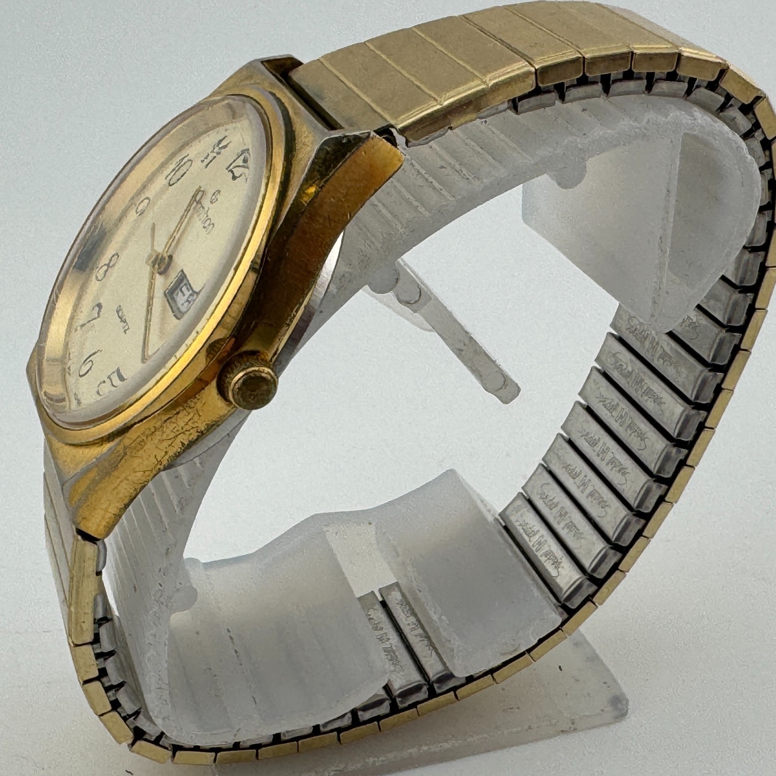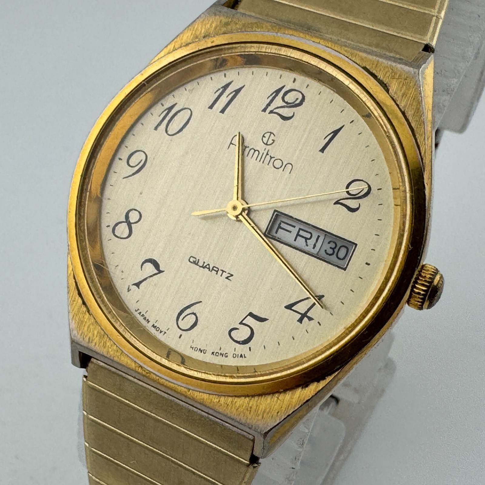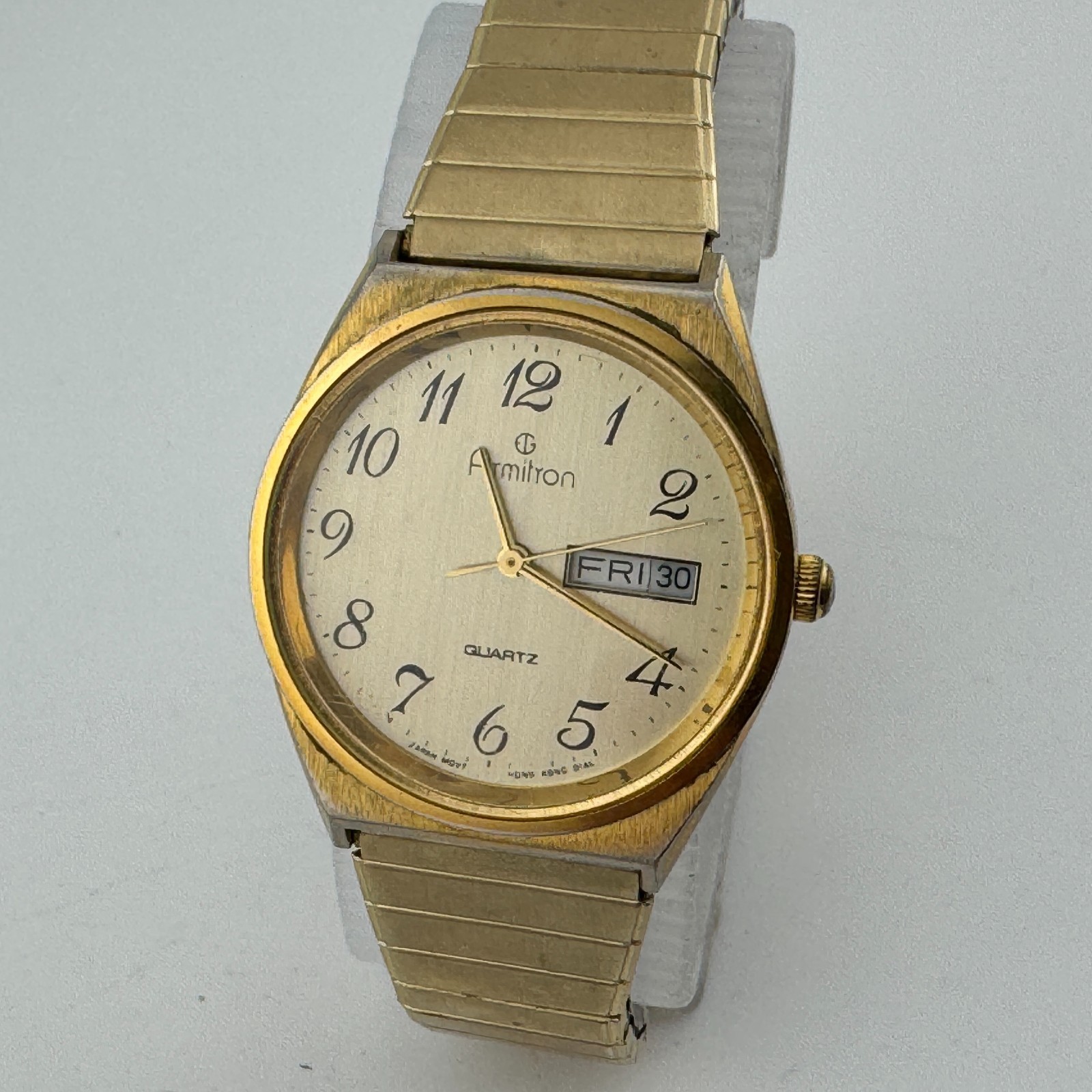 Vintage Armitron Quartz Watch 20/3134 Men Gold Tone Day Date Stretch New Battery