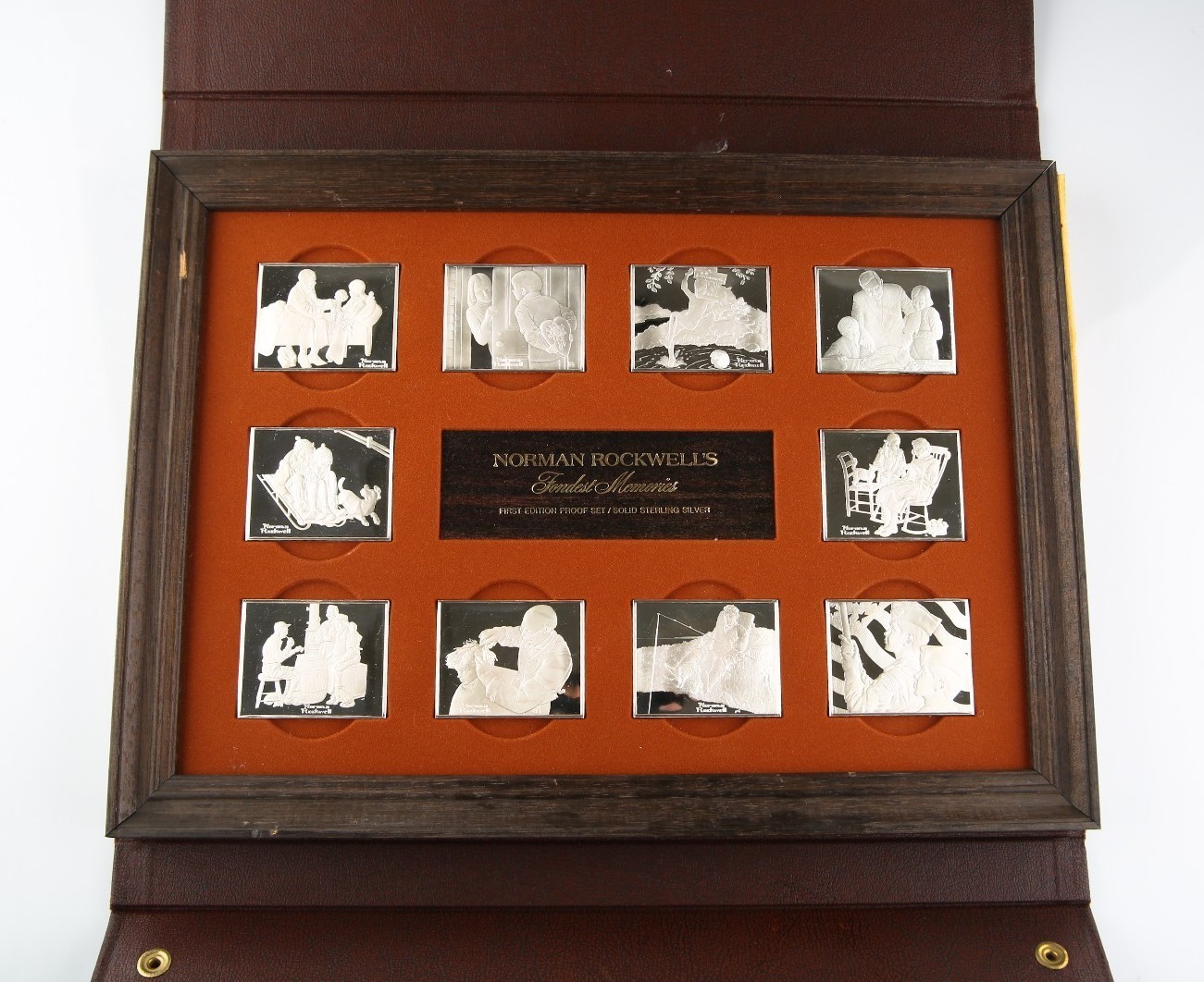 Norman Rockwells Set ?Fondest Memories? aus Sterlingsilber in Proof-Qualitat, im Rahmen mit Etui und Papieren
