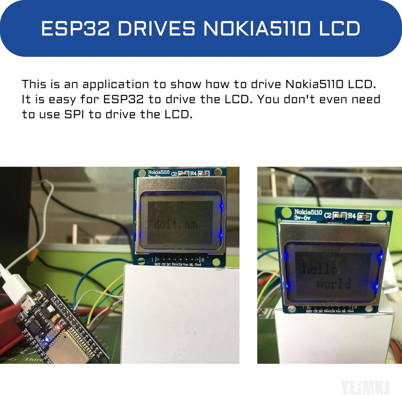 This is an application to show how to drive Nokia5110 LCD. It is easy for ESP32 to drive the LCD. You don't even need to use SPI to drive the LCD.